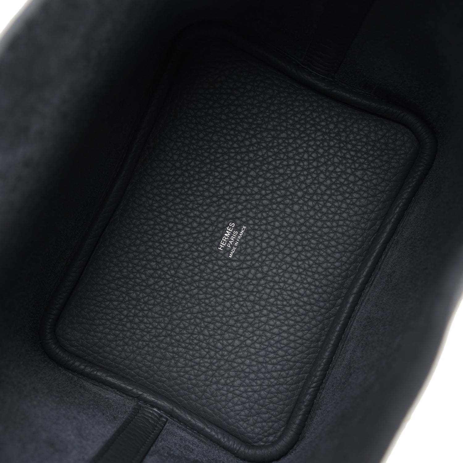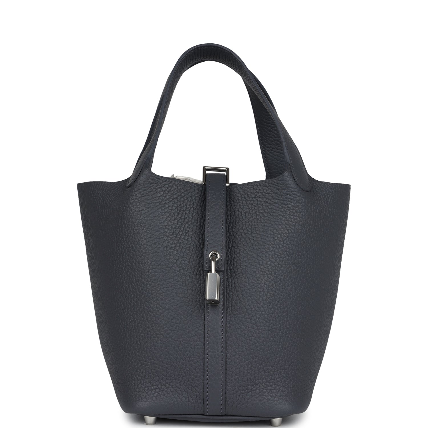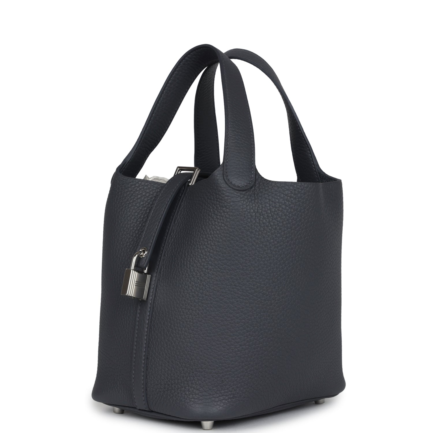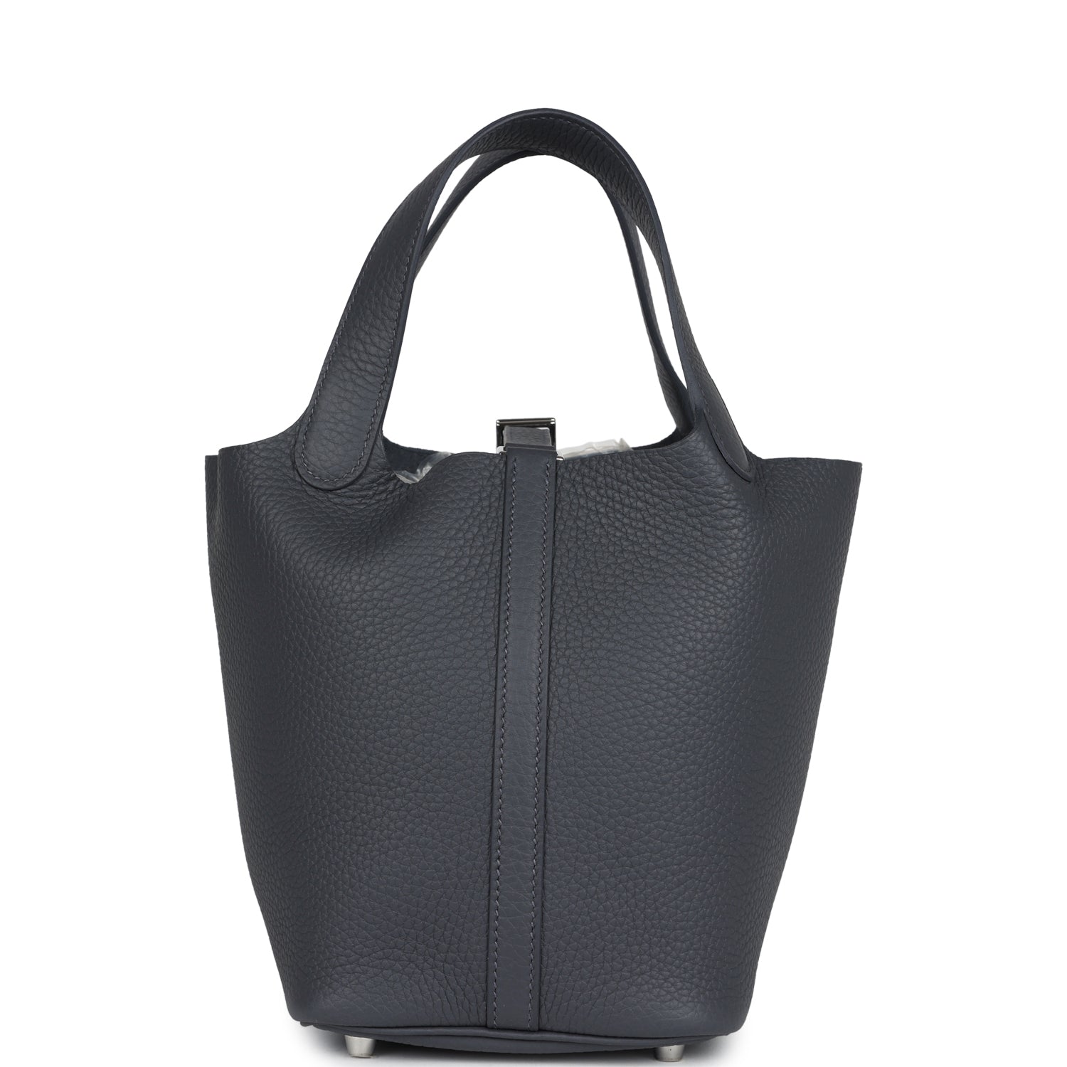 This Picotin is in Ardoise clemence leather with palladium hardware and has tonal stitching with two top handles, lock and two keys.