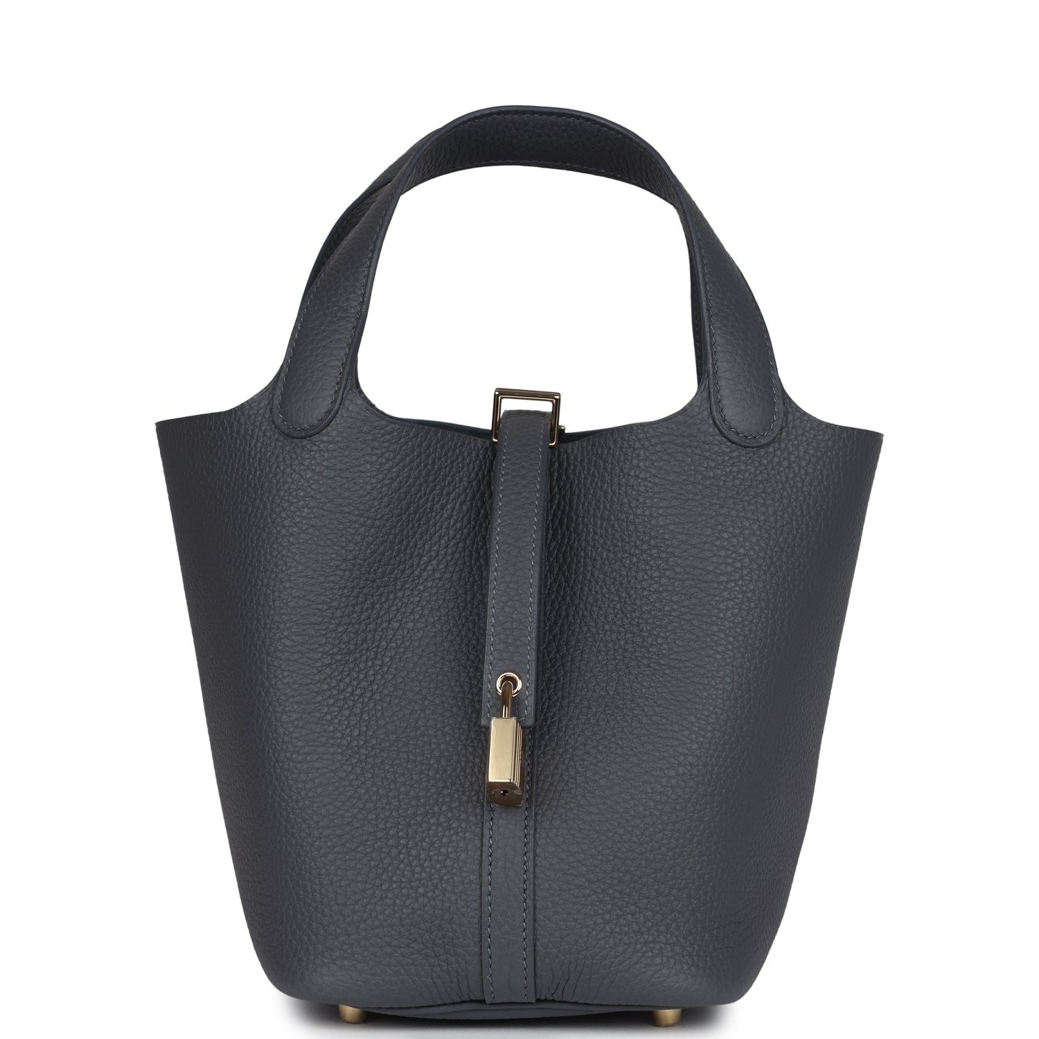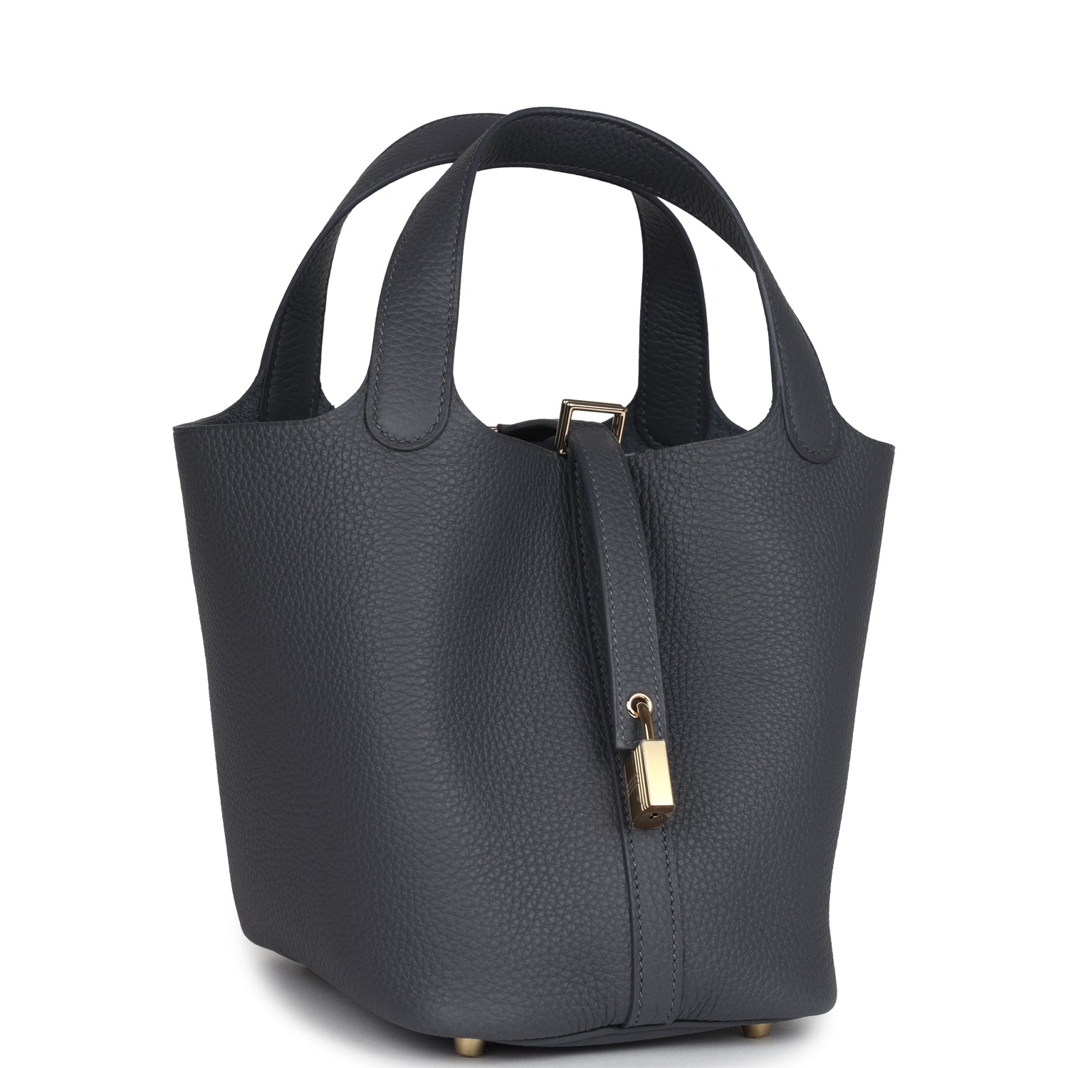 This Picotin is in Ardoise clemence leather with permabrass hardware and has tonal stitching with two top handles, lock and two keys.