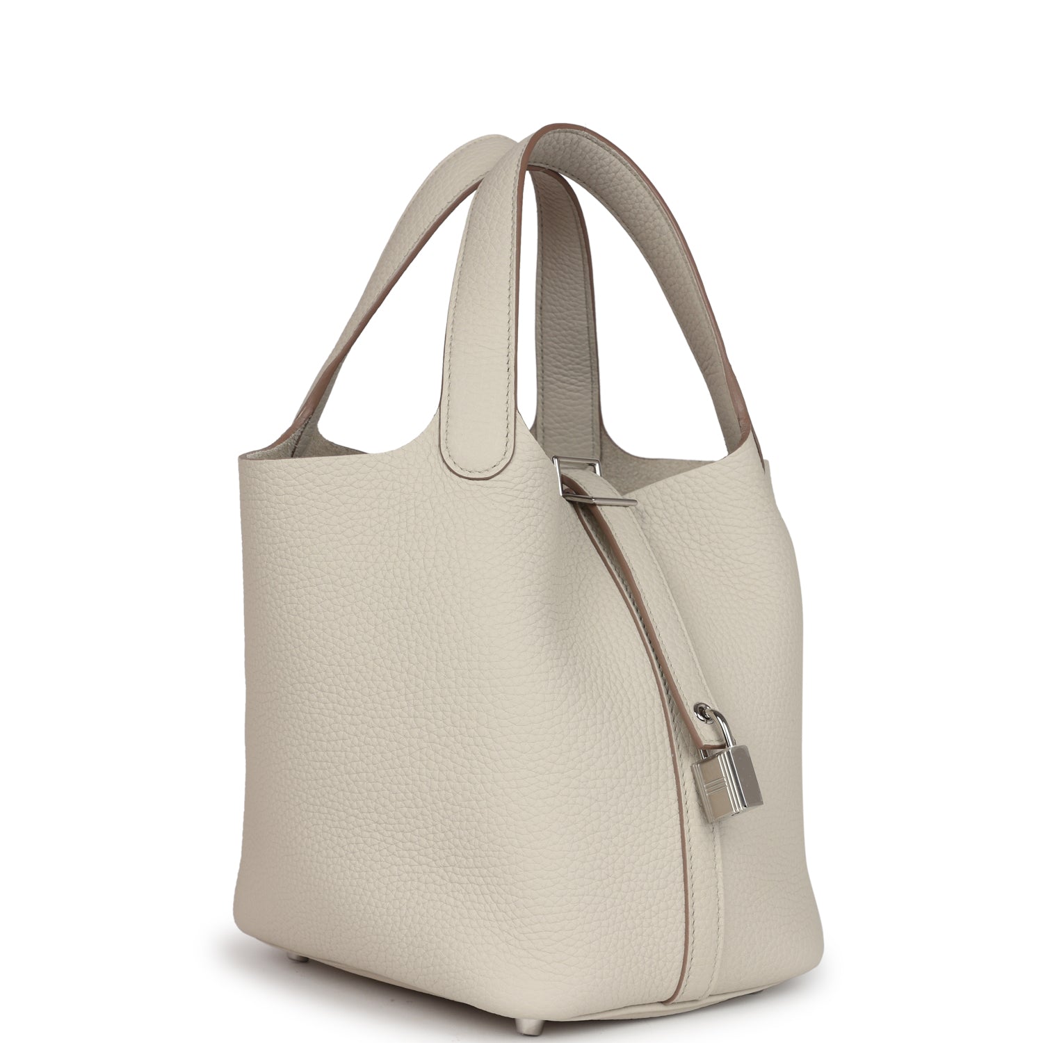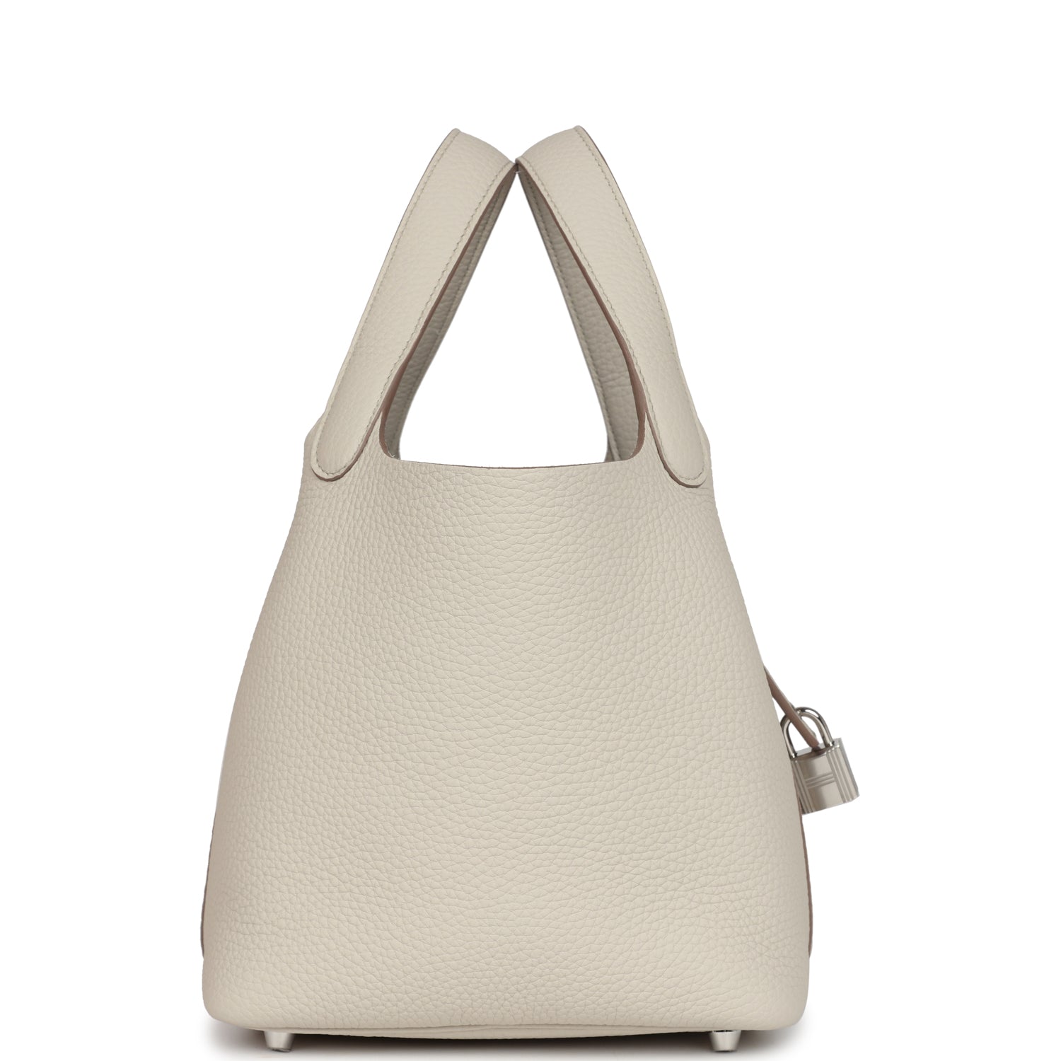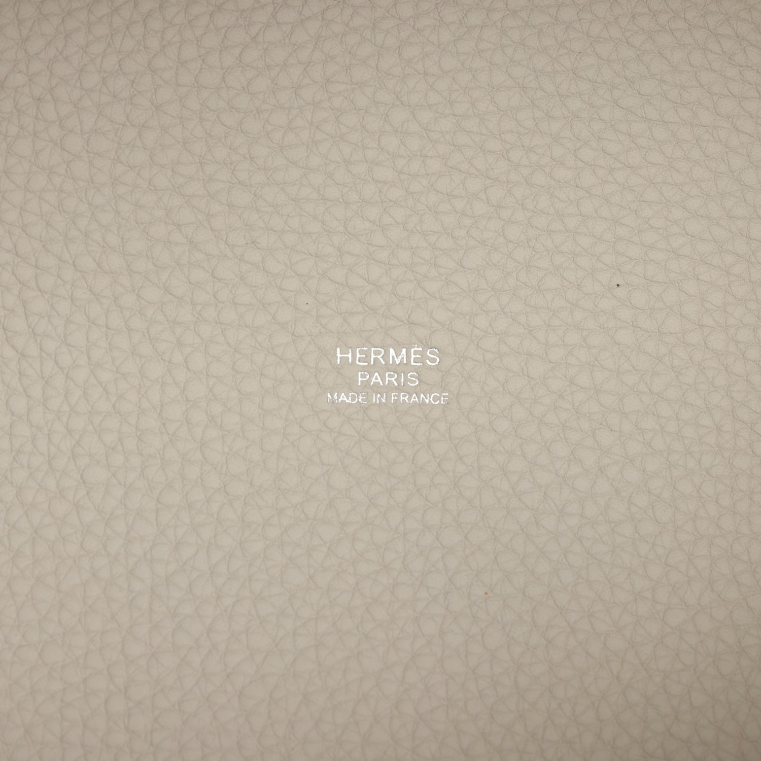 This Picotin is in Beton clemence leather with palladium hardware and has tonal stitching with two top handles.