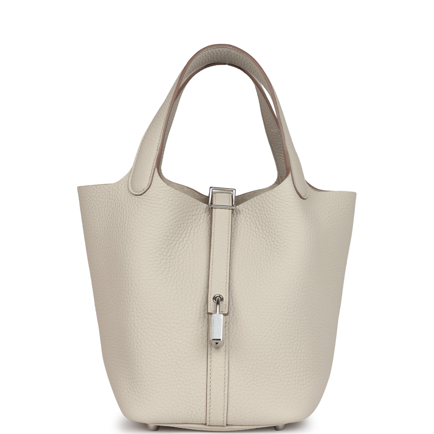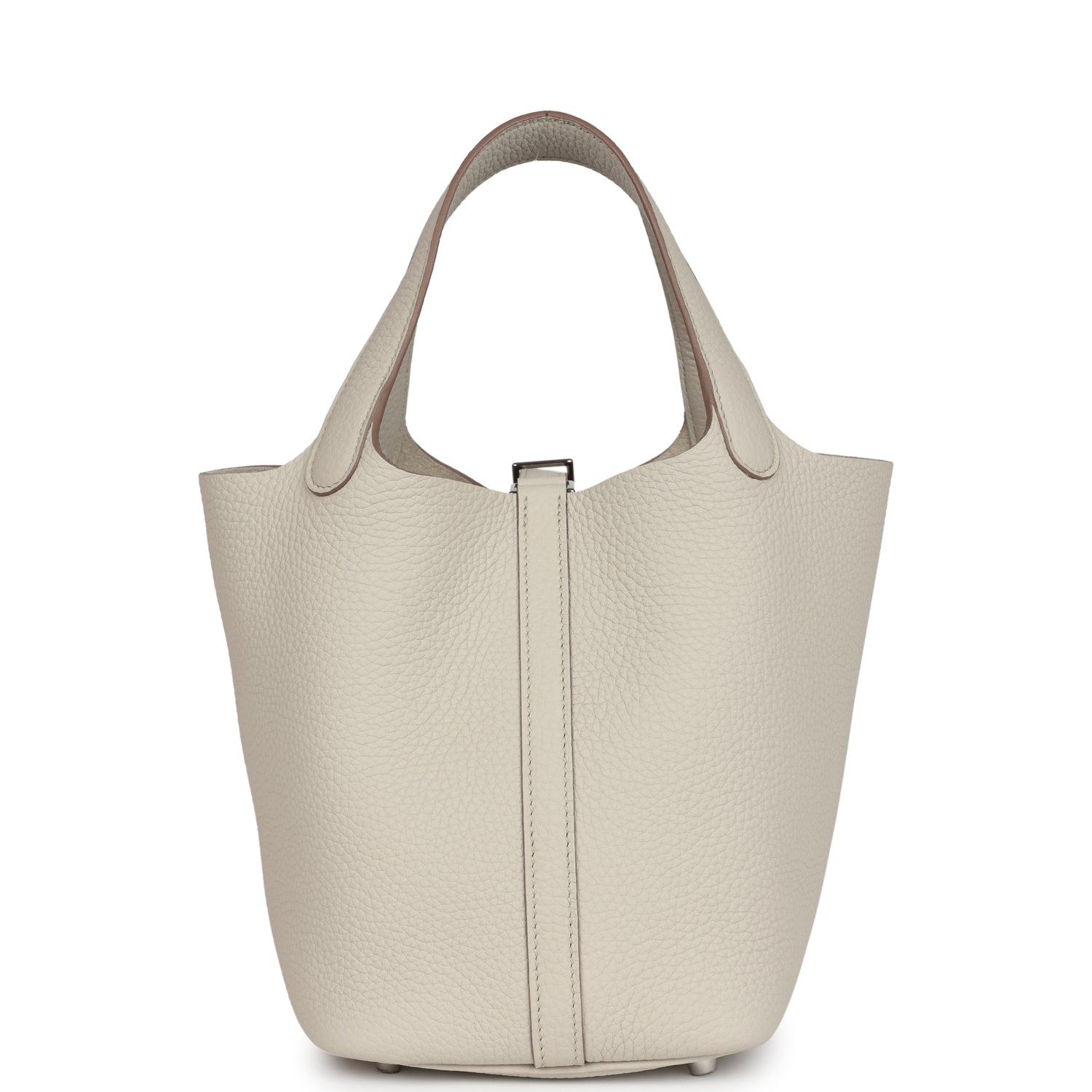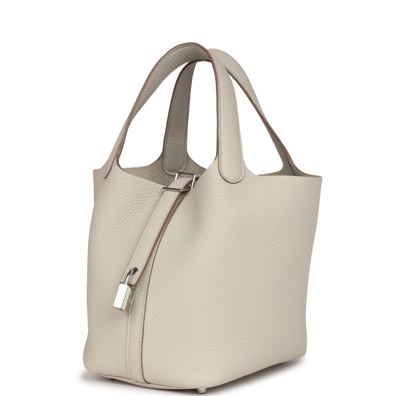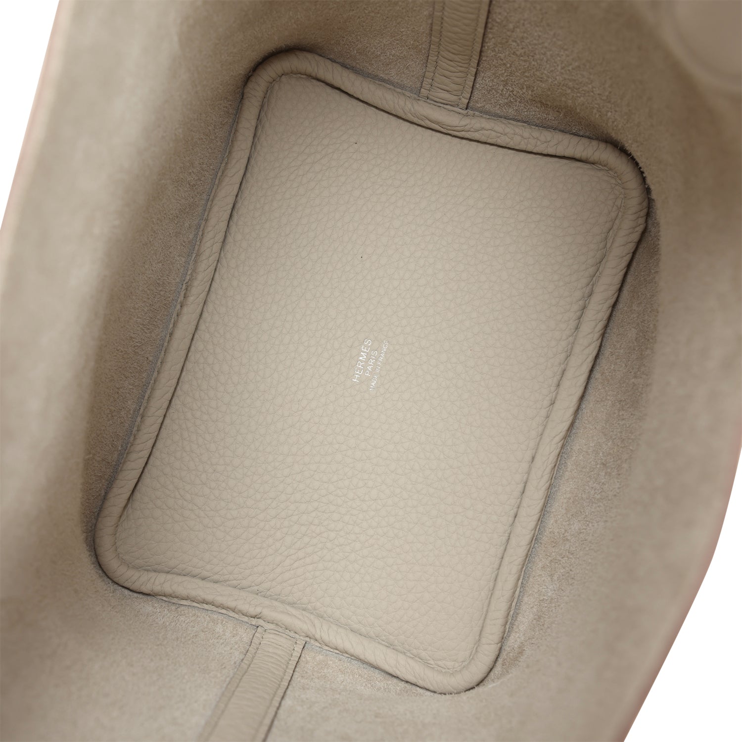 This Picotin is in Beton clemence leather with palladium hardware and has tonal stitching with two top handles.