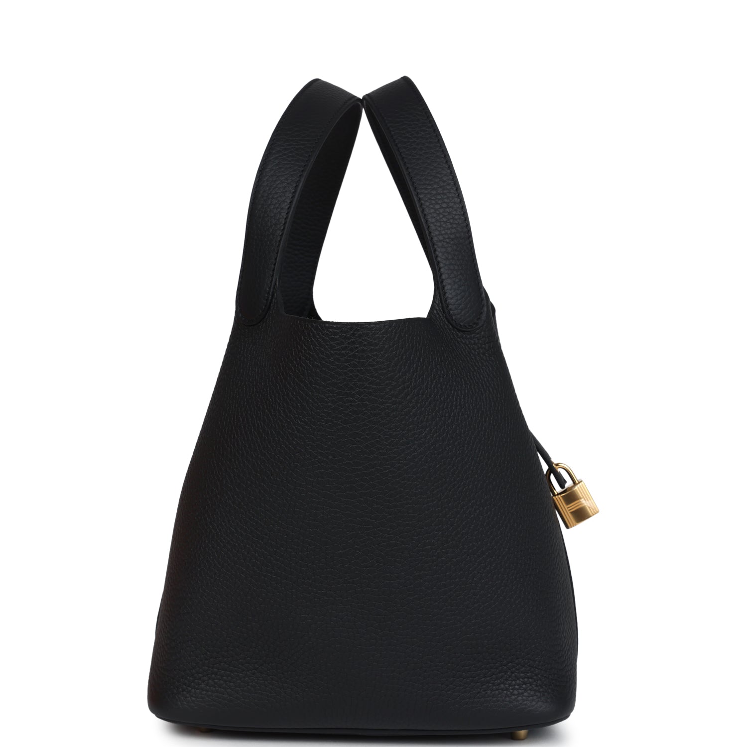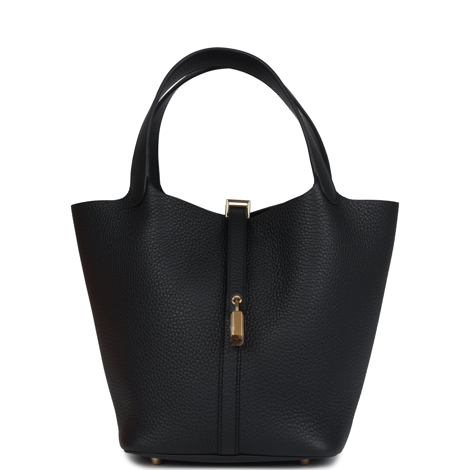 This Picotin Lock 22 is in Black clemence leather with gold hardware and has tonal stitching with two top handles.