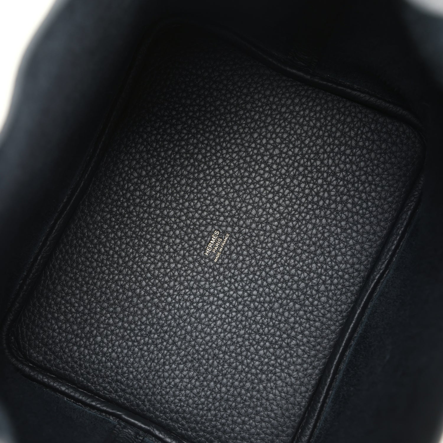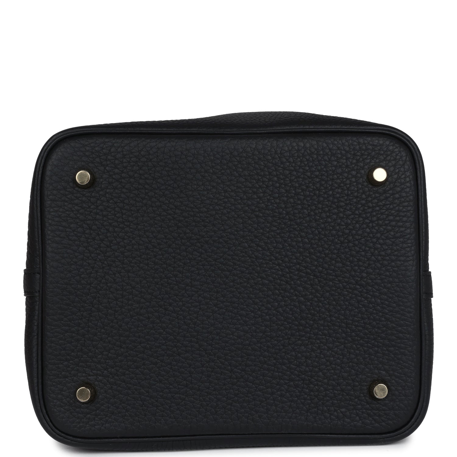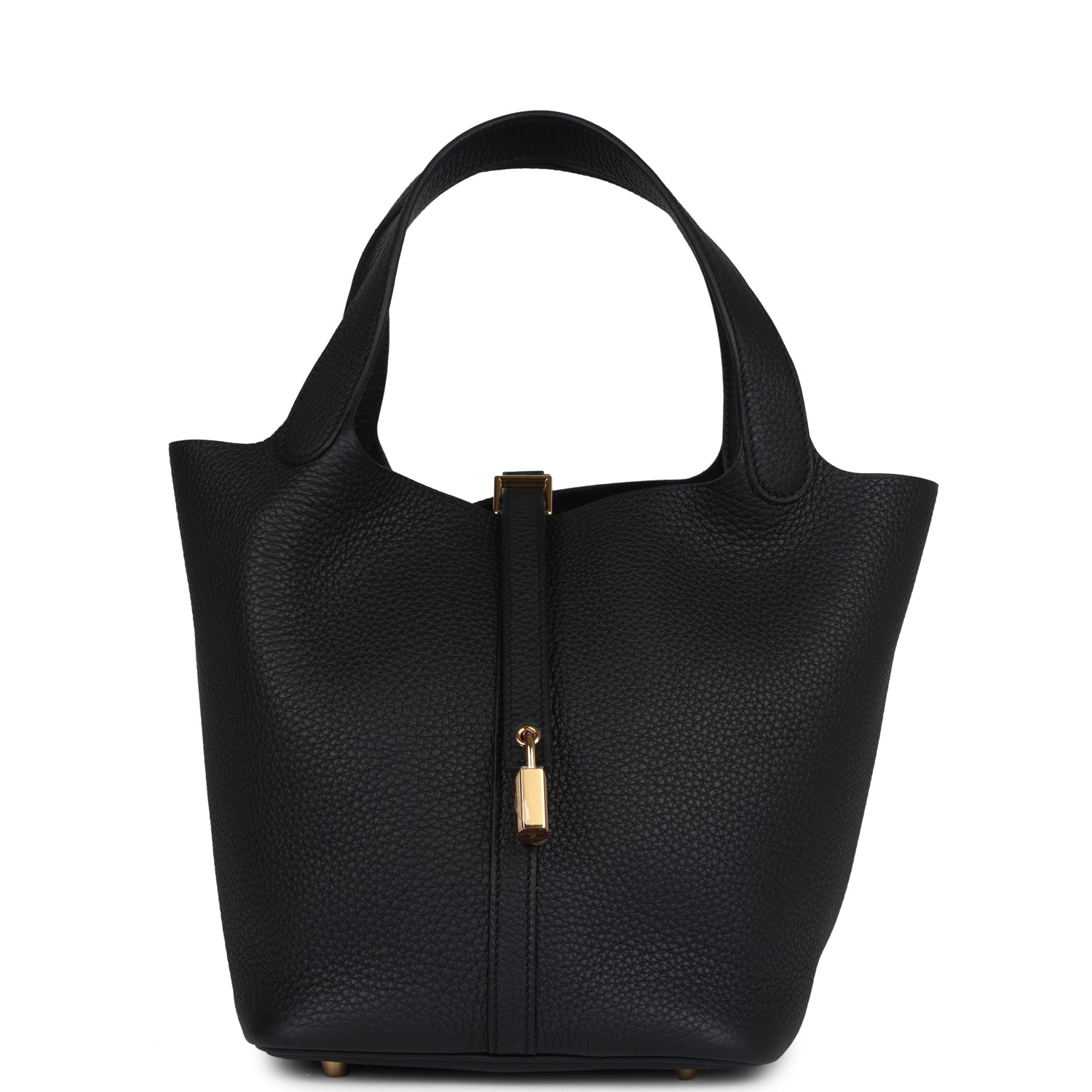 This Picotin Lock 22 is in Black clemence leather with gold hardware and has tonal stitching with two top handles.