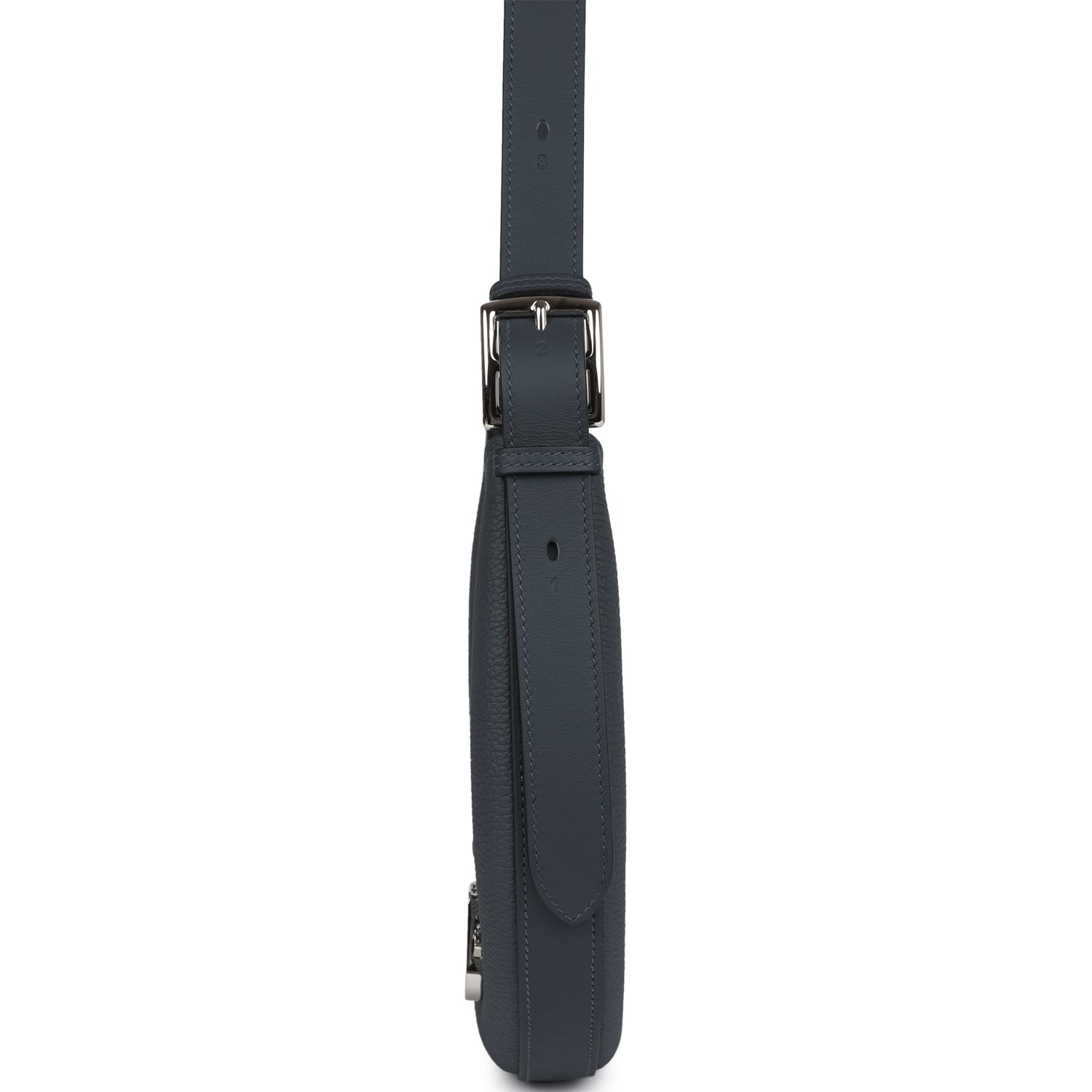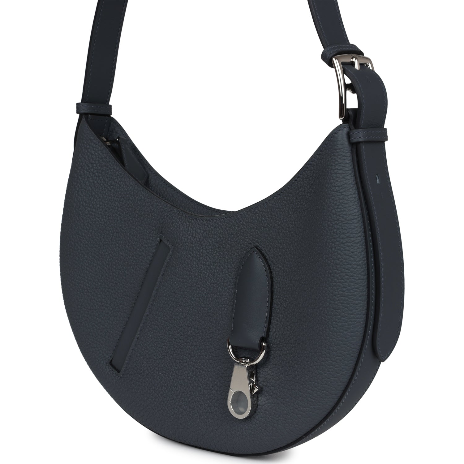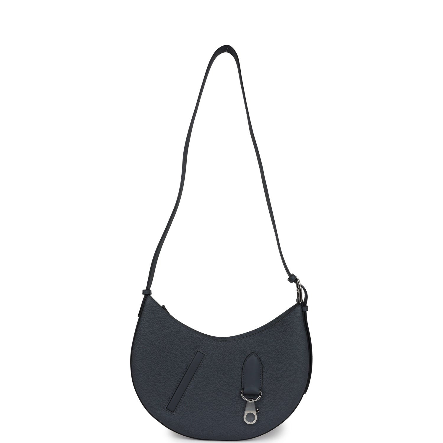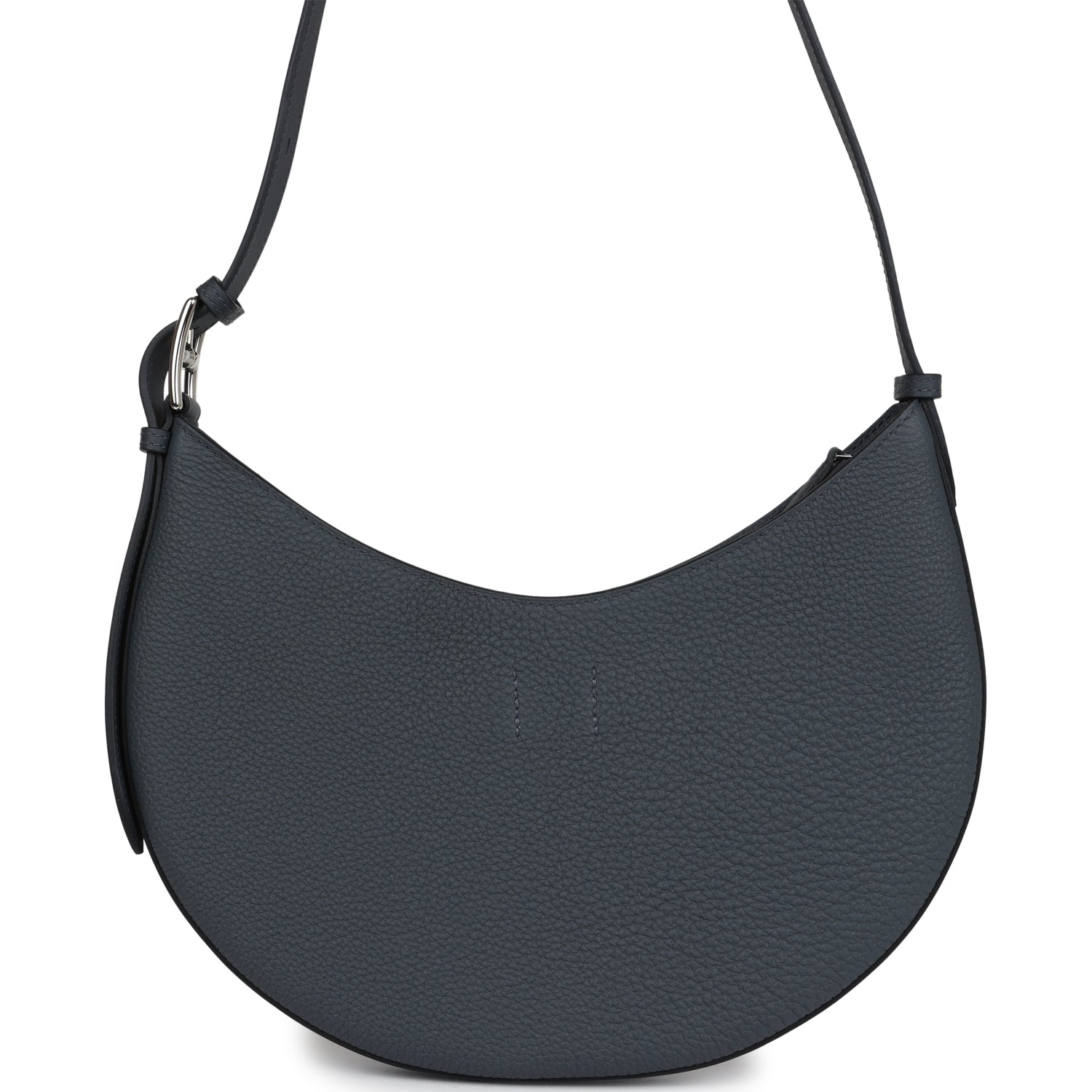This P'tit Arcon Bag is in Gris Misty togo and swift leather with palladium hardware, featuring contrast stitching, front slip pocket, front palladium snap hook, a zipper closure and adjustable flat leather shoulder strap.