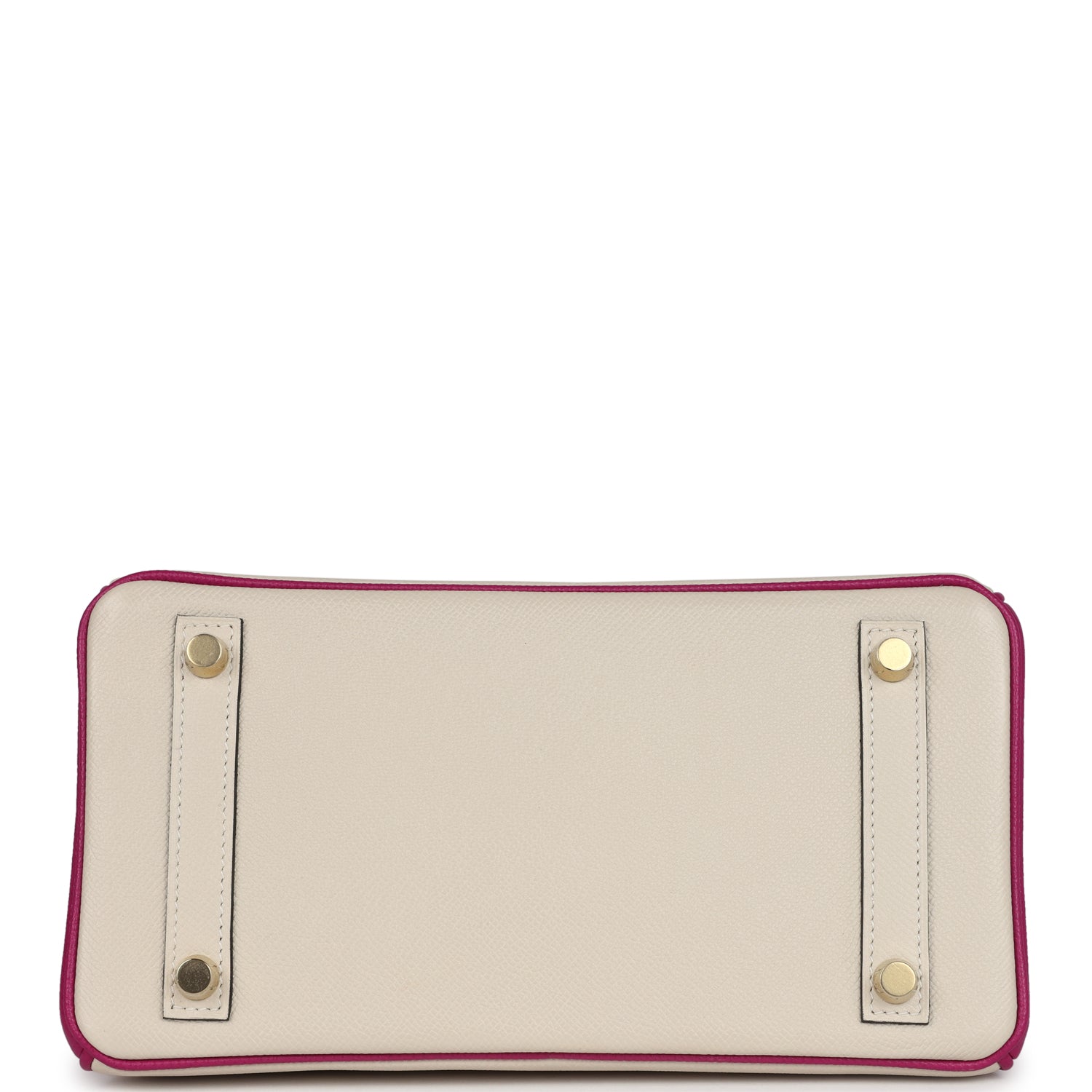 This Special Order Bi-color Sellier Birkin is in Craie and Rose Pourpre epsom leather with brushed gold hardware, has tonal stitching, front flap, two straps with center toggle closure, clochette with lock and two keys, and double rolled handles.