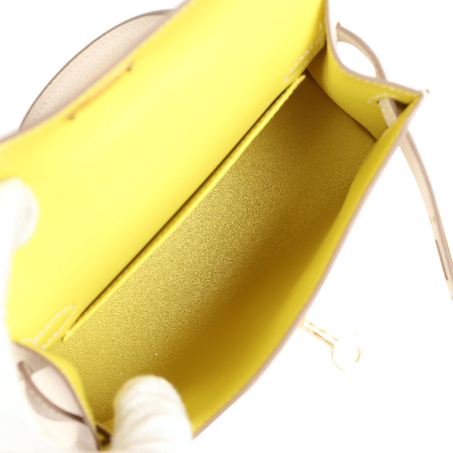 The interior is lined with Lime lambskin leather and has one open pocket on the back wall.