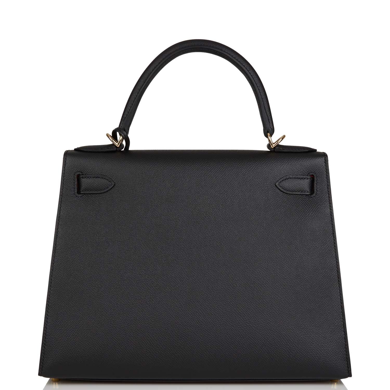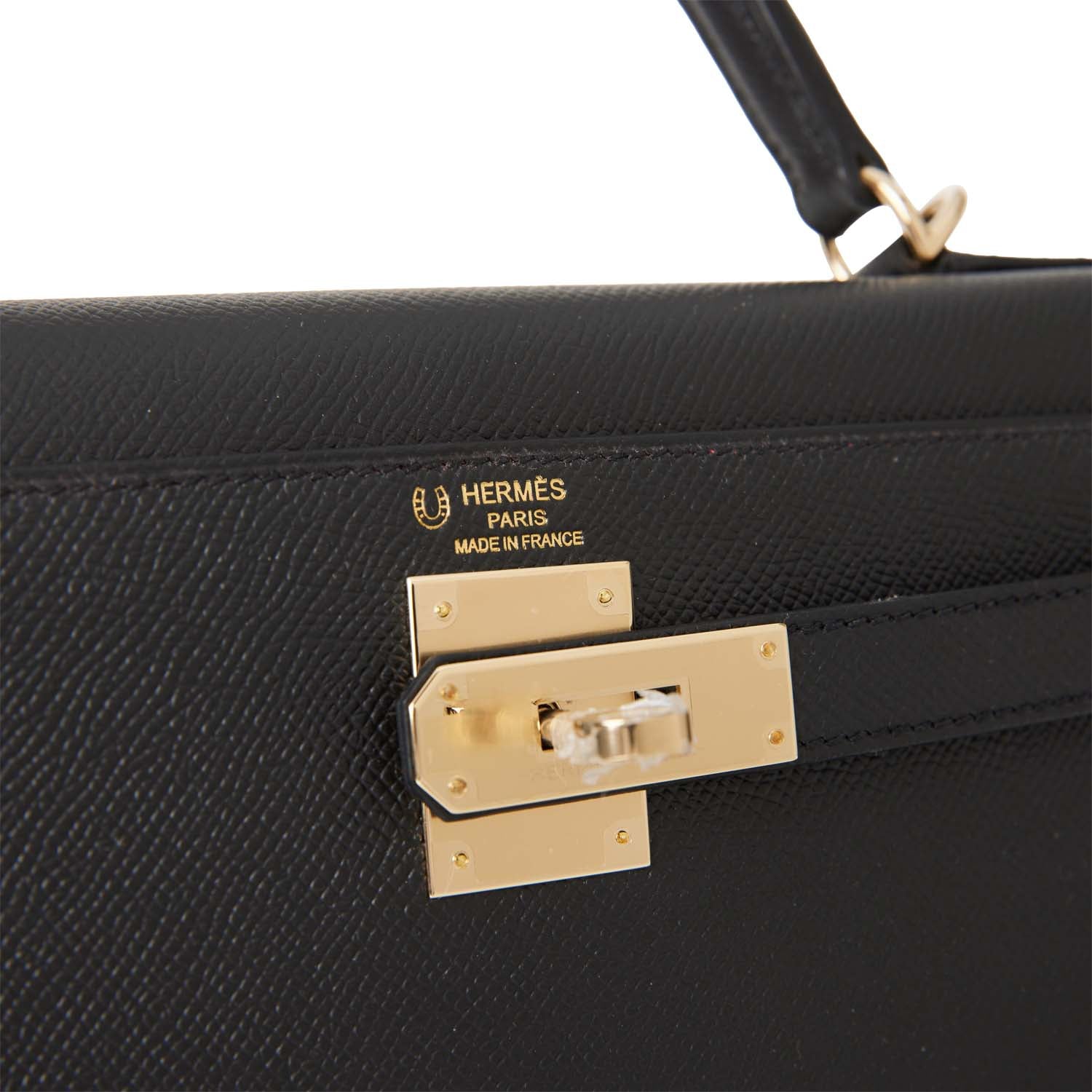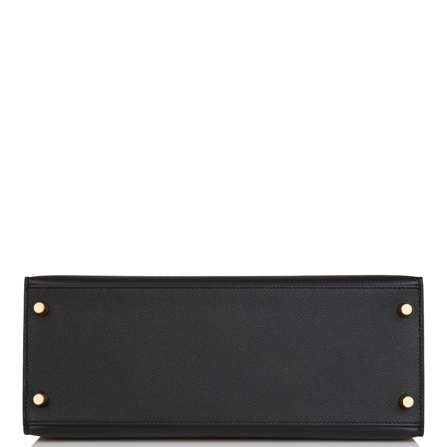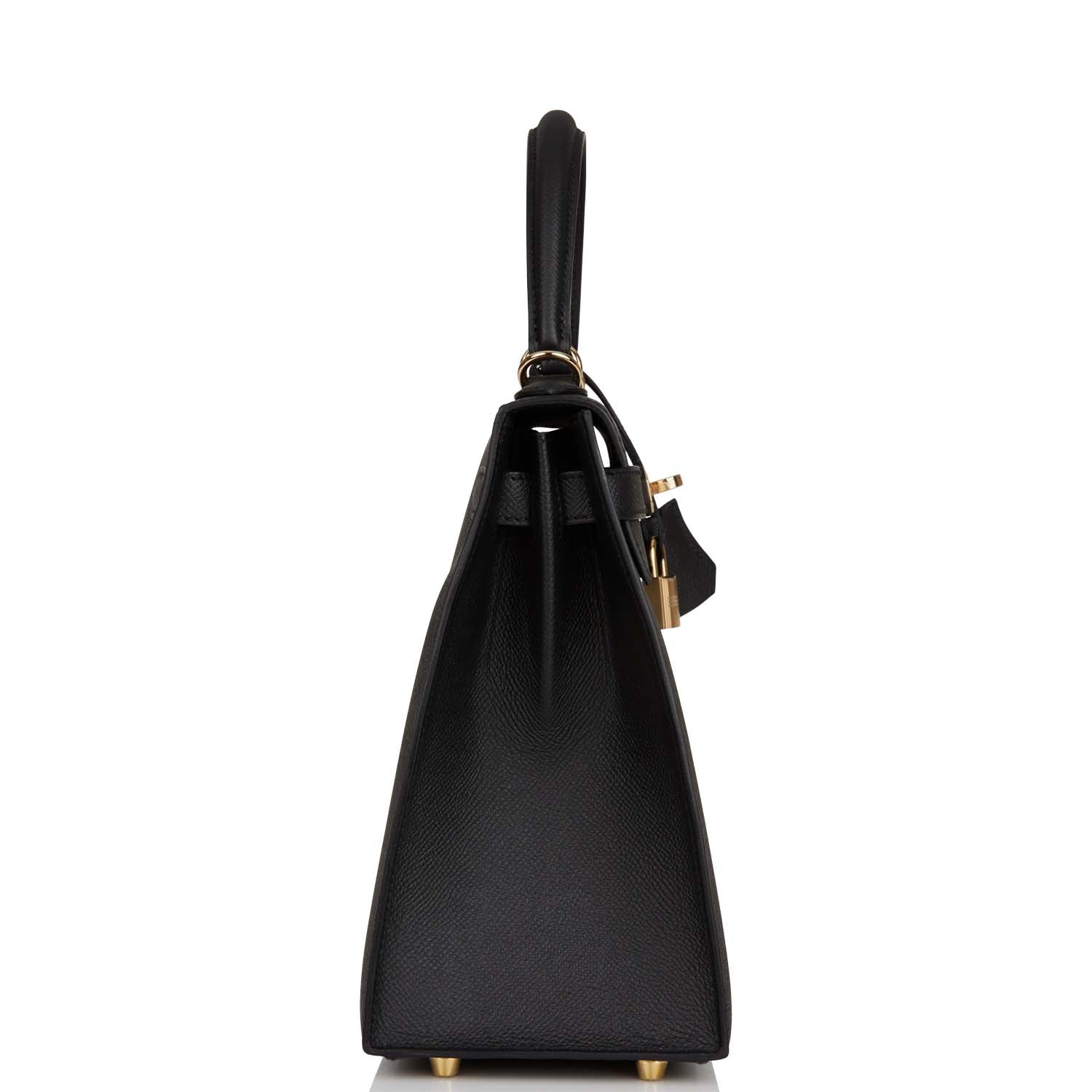 Special Order Kelly, in the Sellier style, is in Black epsom leather with permabrass hardware and has tonal stitching, two straps with front toggle closure, clochette with lock and two keys, single rolled handle and removable shoulder strap.