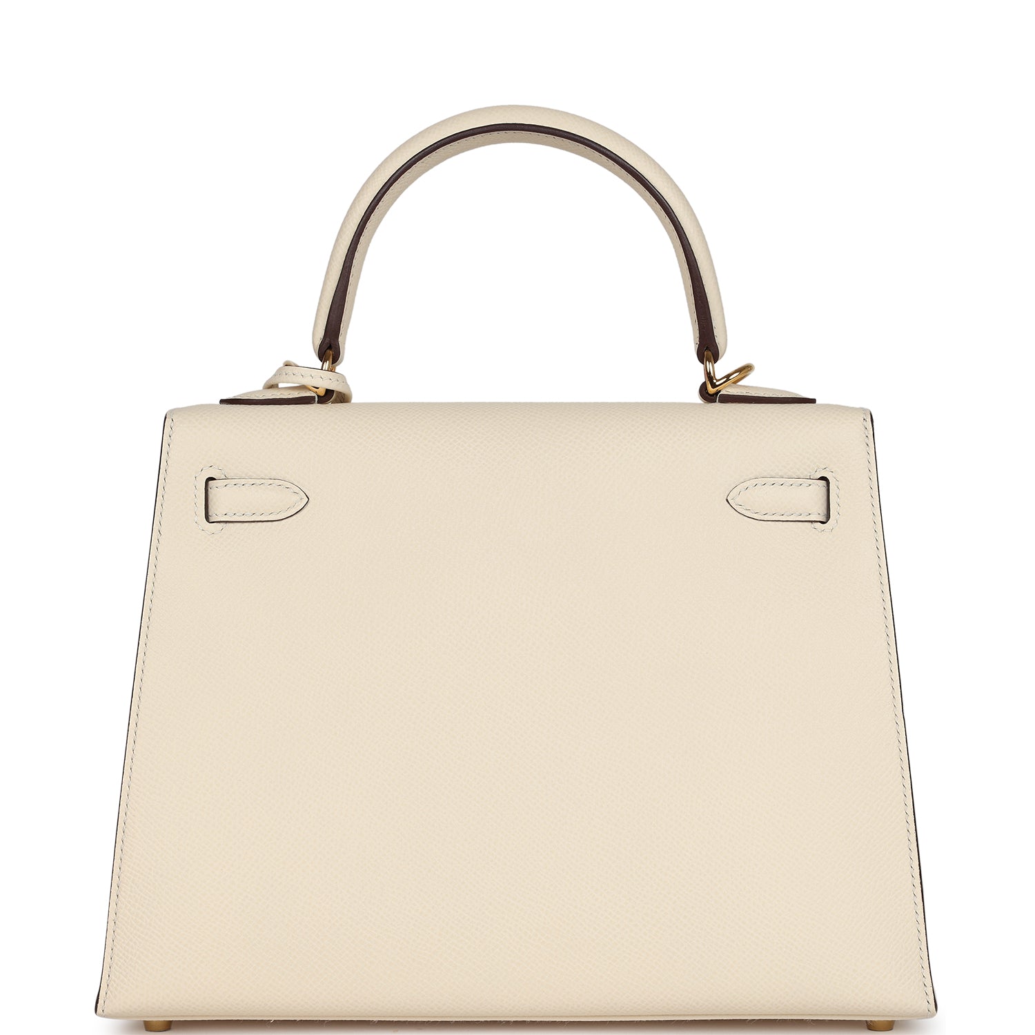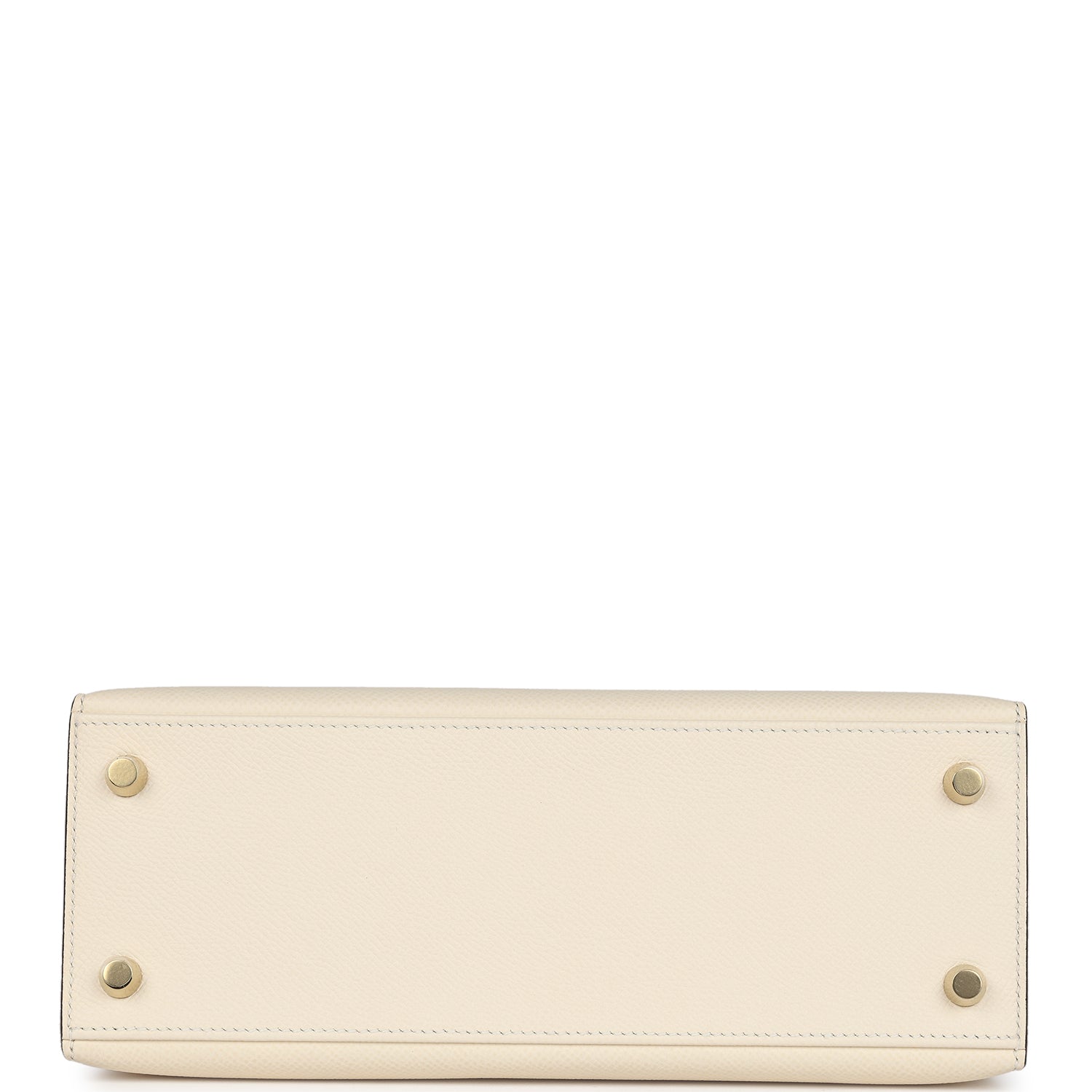 This Kelly, in the Sellier style, is in Nata epsom leather with gold hardware and has tonal stitching, two front straps with toggle closure, clochette with lock and two keys, single rolled handle and removable shoulder strap.