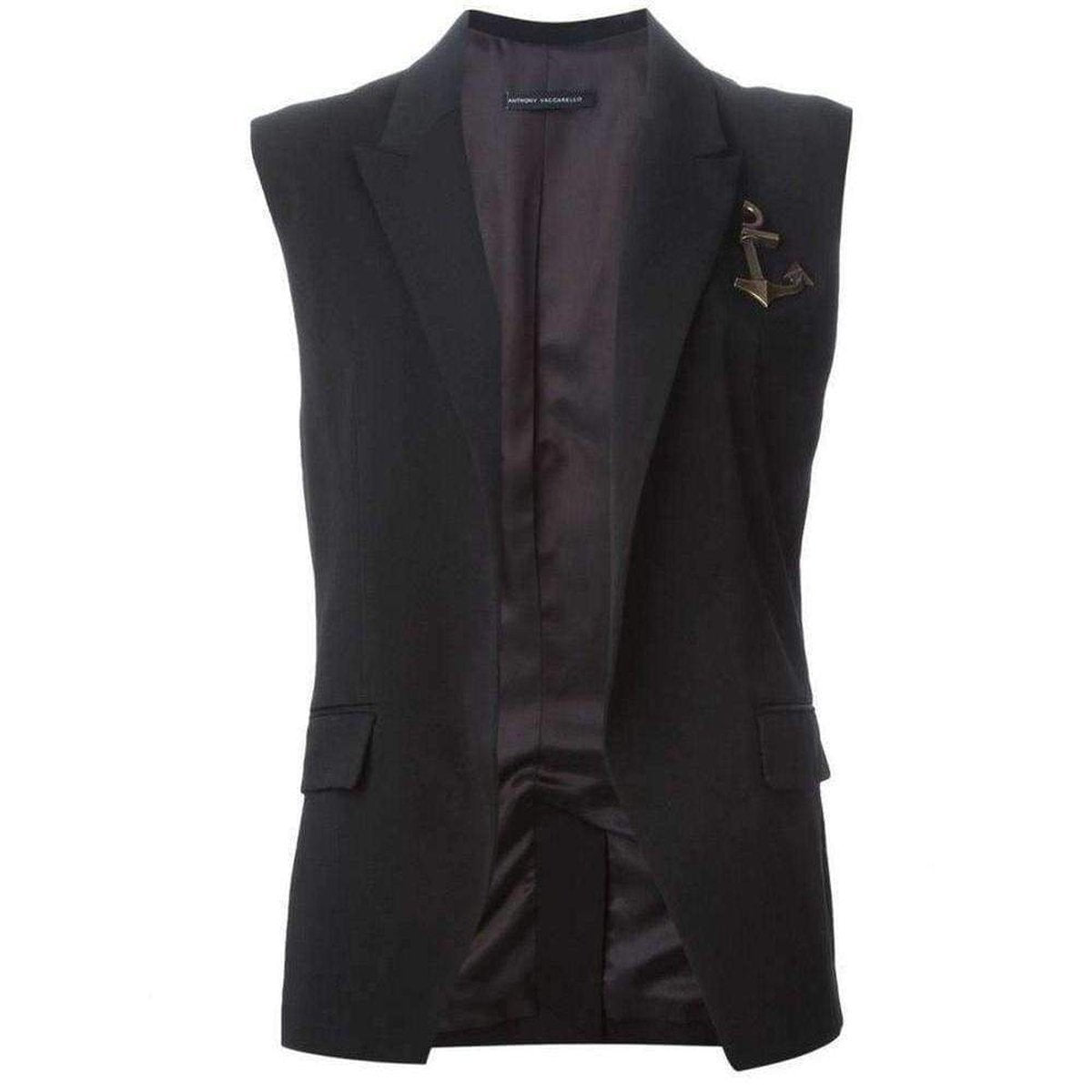 Black Pinned Anchor Emblem Vest Relaxed-fit vest in black.