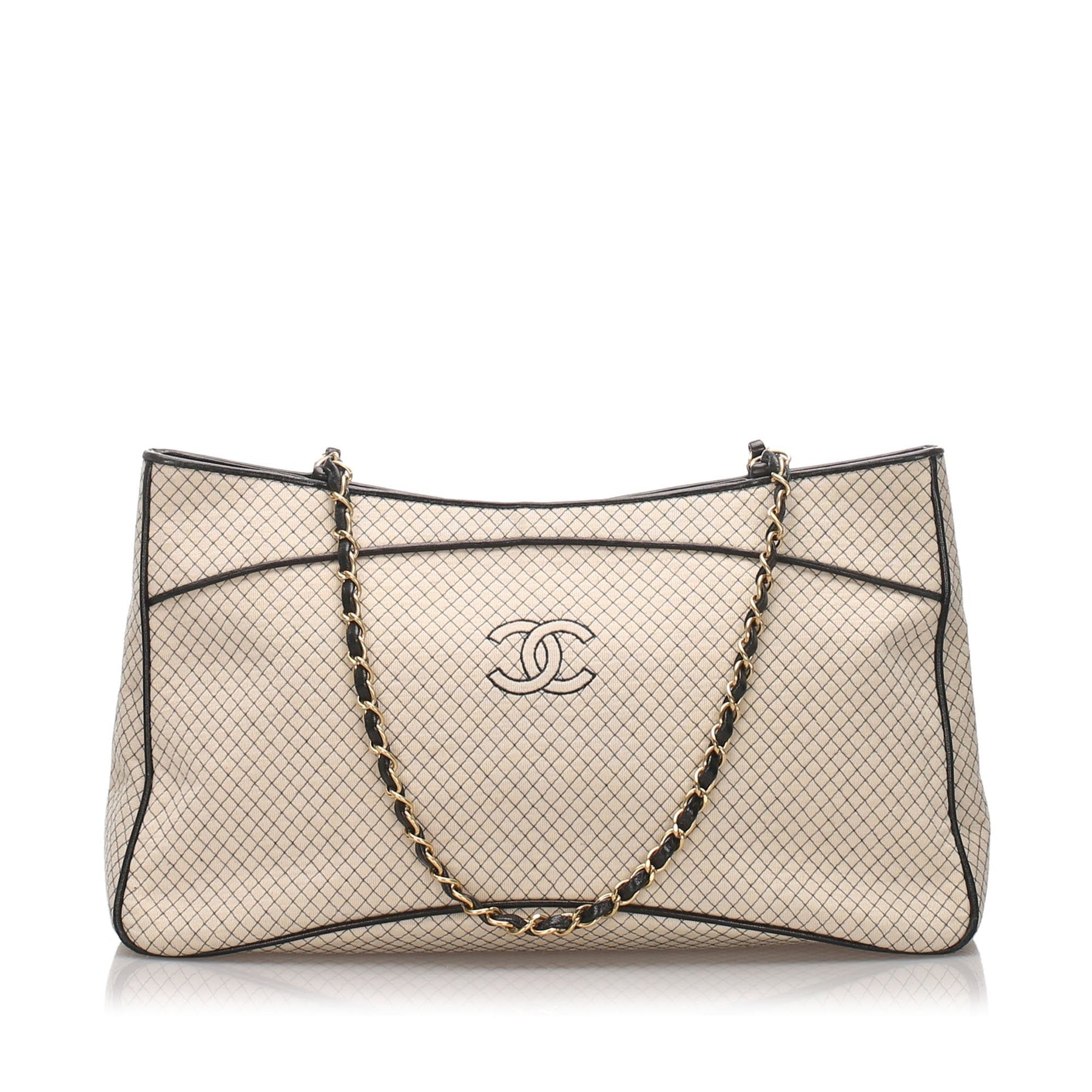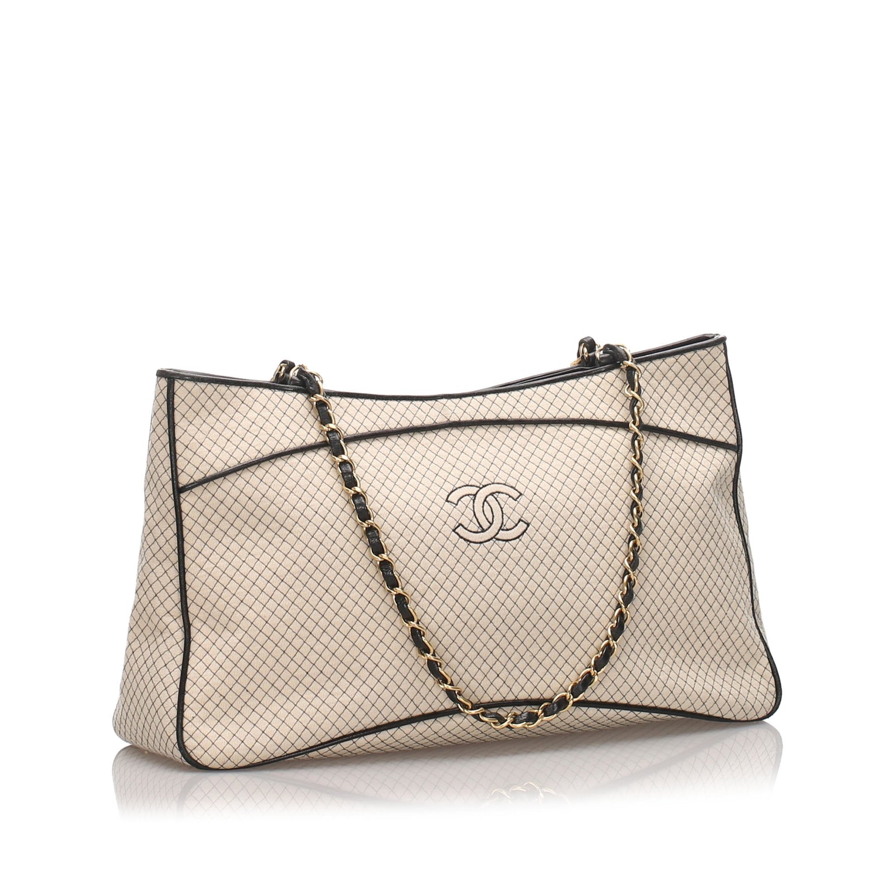 Pre-Loved C*C White Cotton Fabric CC Quilted Tote Bag France
