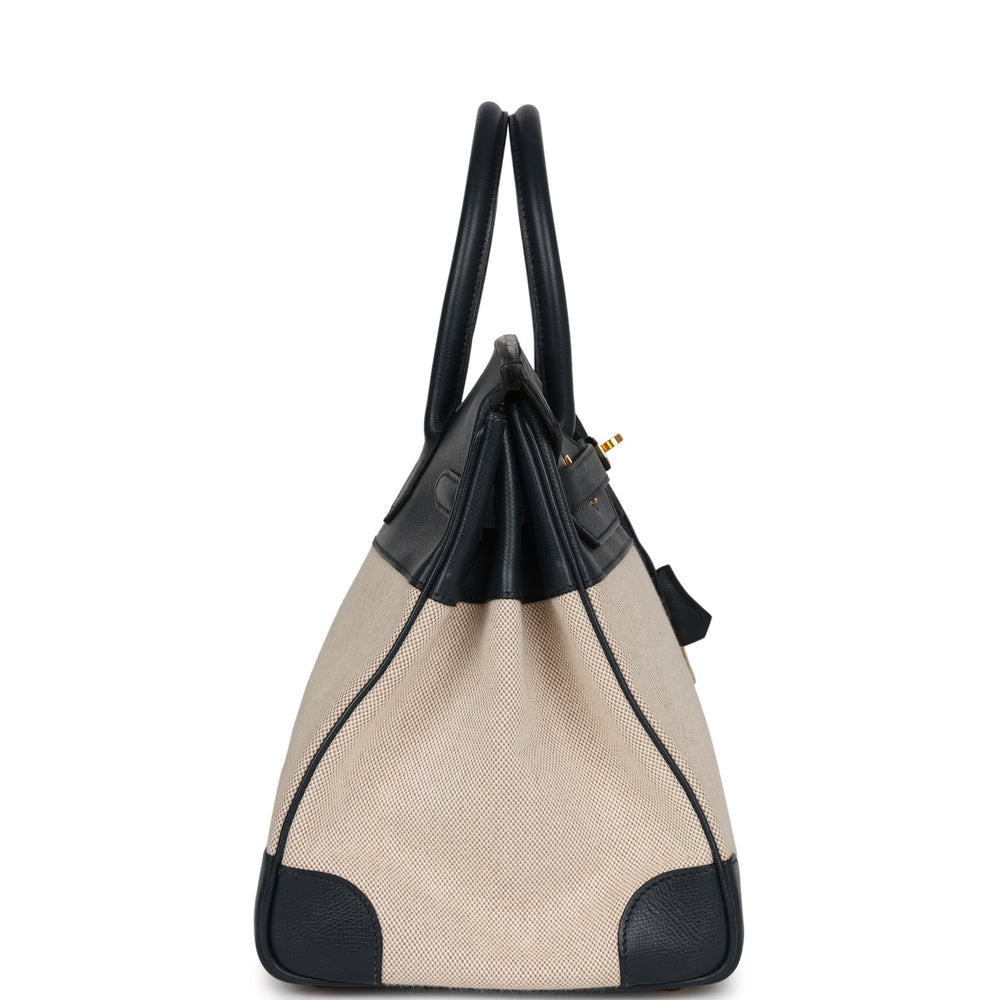 Vintage Hermes Birkin 35 Bleu Indigo Courchevel and Toile H Gold Hardware