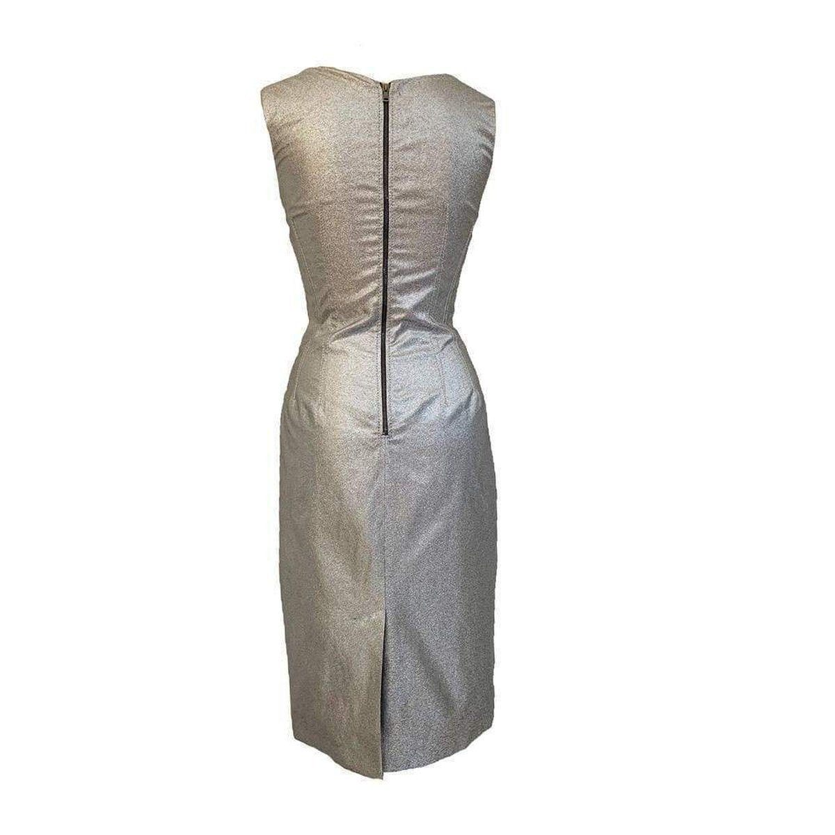 The is the ultimate feminine dress! This silver silk Dolce & Gabbana dress is body hugging with leopard print lining and a deep back slit.