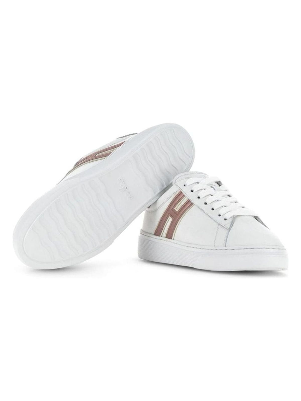 Step up your sneaker game with these versatile leather sneakers from Hogan. With a stylish mix of white and blush pink calf leather, these sneakers feature a logo patch on the side, a contrasting heel counter, and a front lace-up fastening for a trendy yet comfortable look.
