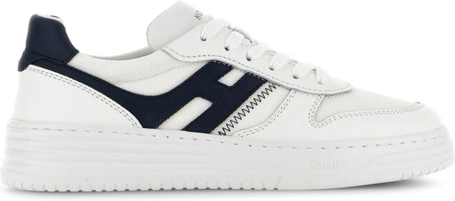 Elevate your style with these color-block panelled sneakers that are as durable as they are trendy. The contrasting stitching and branded heel counter add a modern touch to your look, while the canvas/leather material ensures both style and longevity.