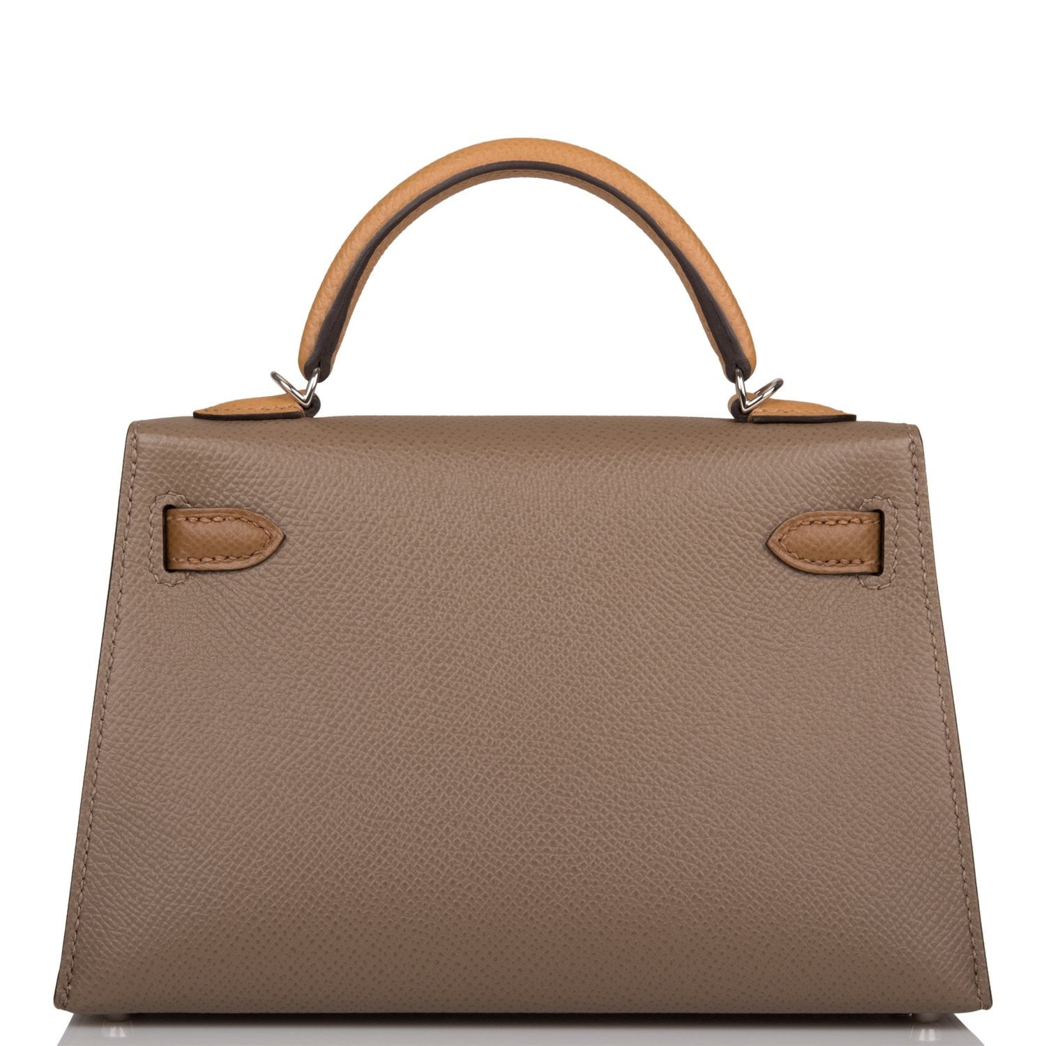 This Kelly, in the Sellier style, is in Etoupe, Alezan and Biscuit epsom leather with palladium hardware and has tonal stitching, two straps with front toggle closure, single rolled handle and removable shoulder strap.