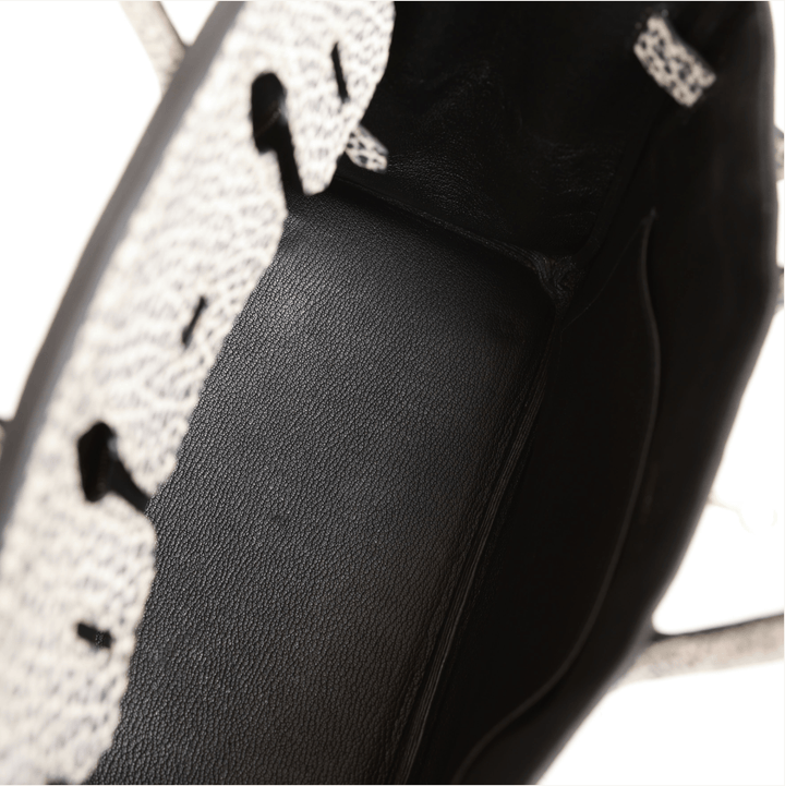 The interior is lined with black leather and has one zip pocket with an Hermes engraved zipper pull and an open pocket on the opposite side.