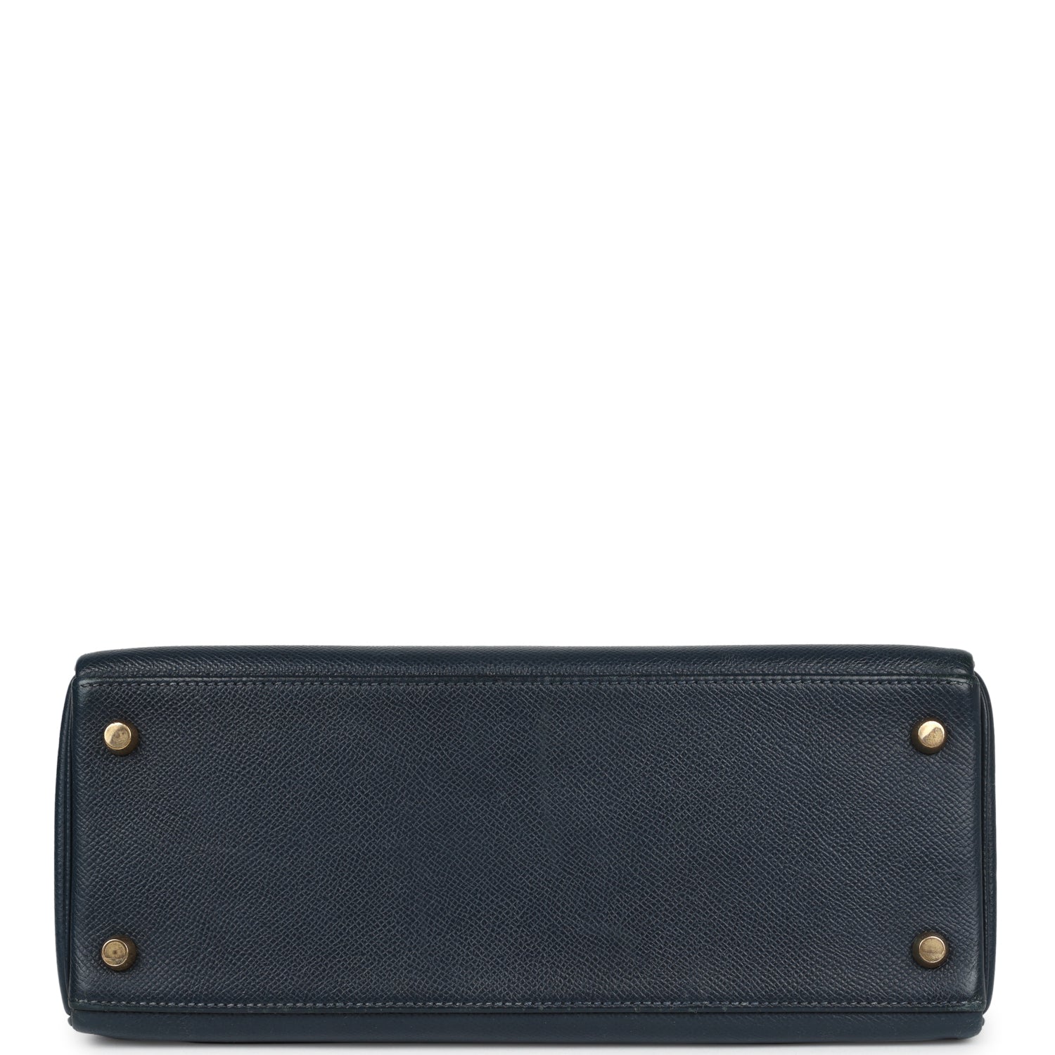 This Kelly, in the Retourne style, is of Bleu Marine courchevel leather with gold hardware and has tonal stitching, a front toggle closure, a clochette with lock and two keys and a single rolled handle.