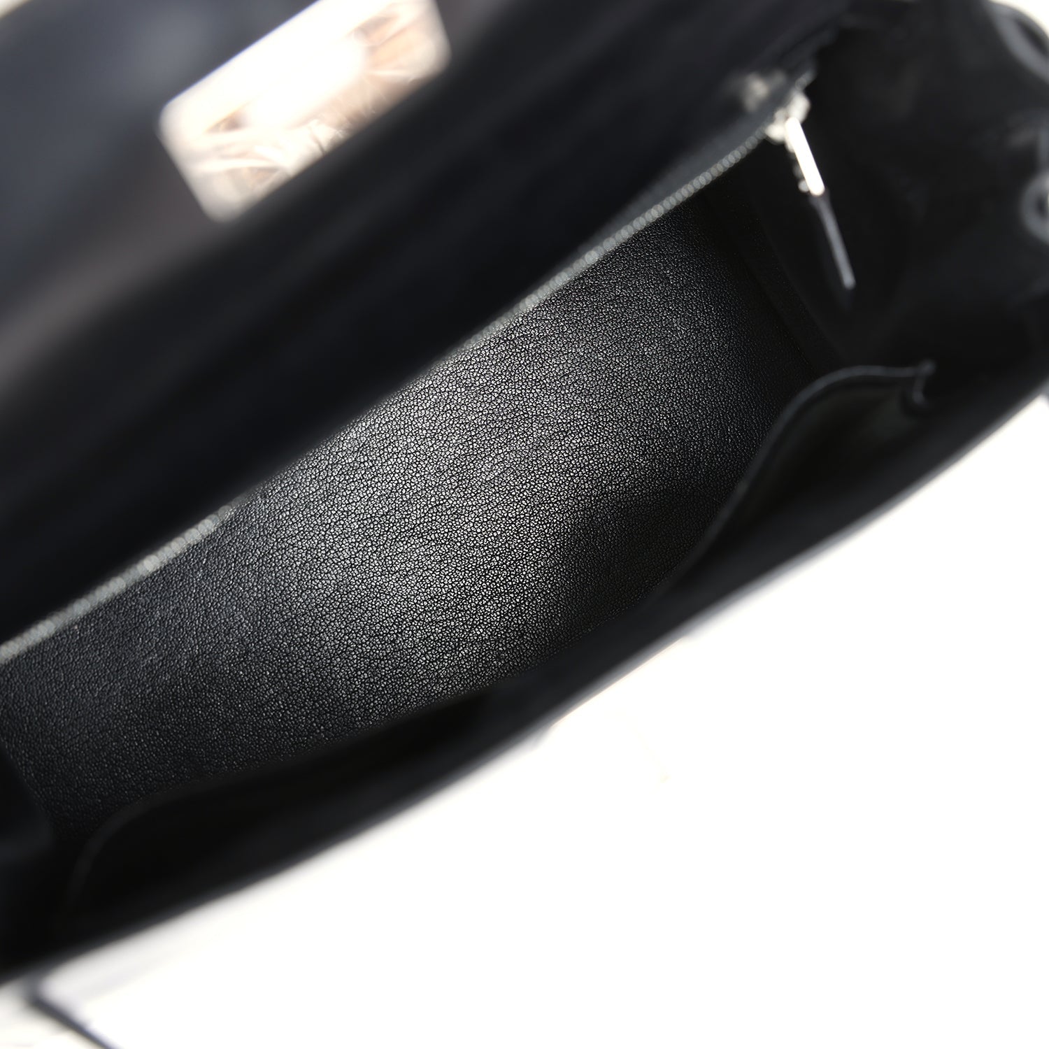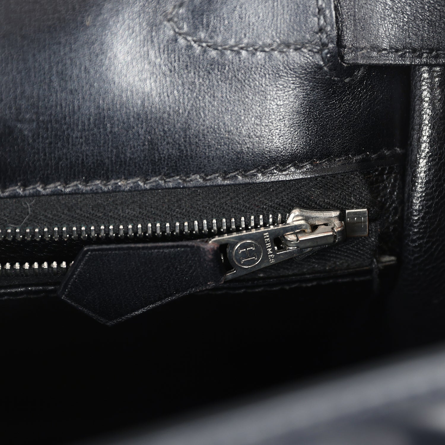 The interior is lined with Black chevre leather and has one zip pocket with an Hermes engraved pull and two open pockets on the opposite side.