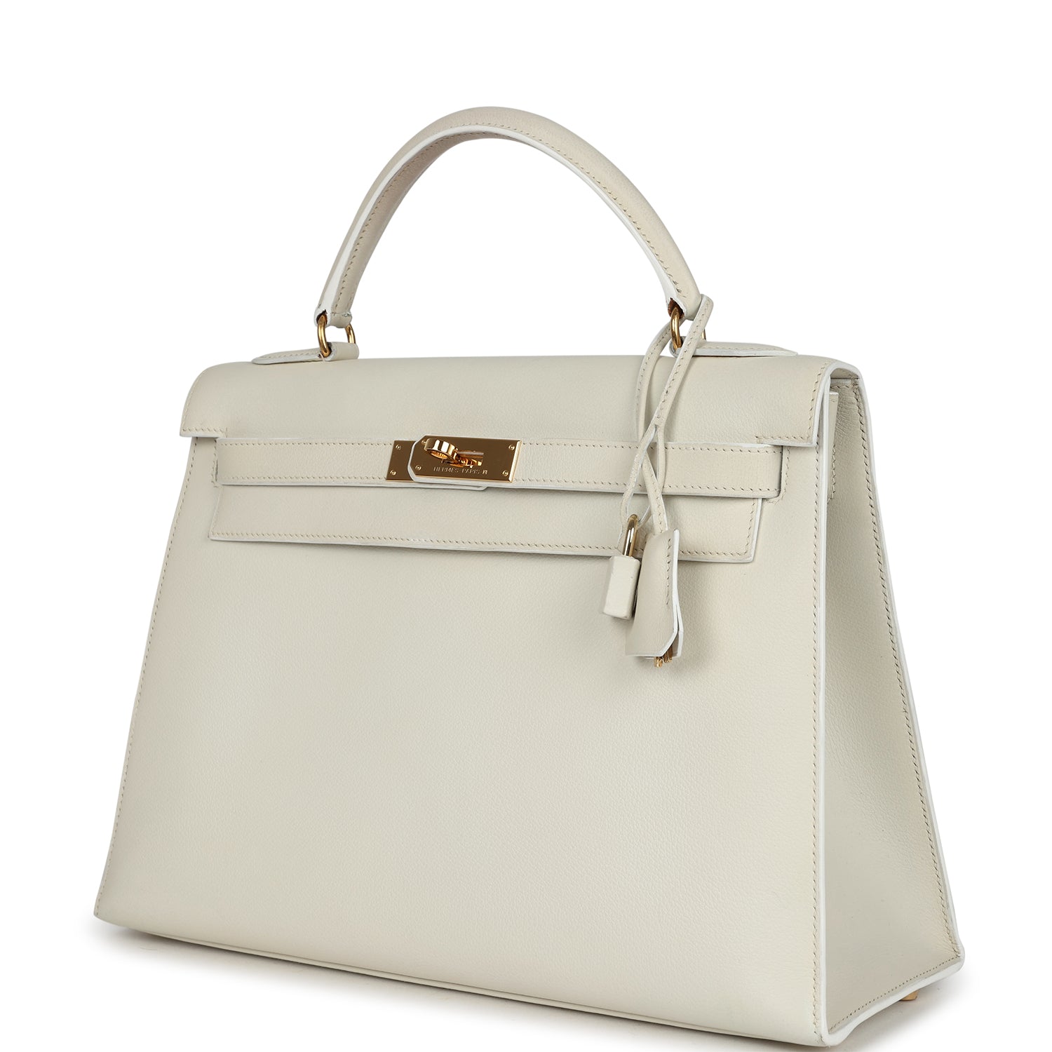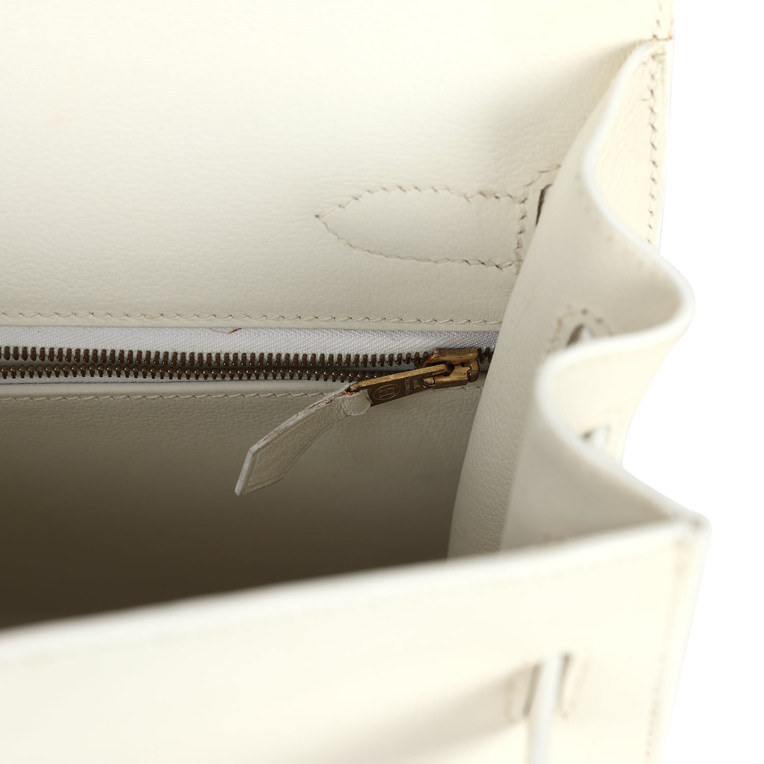 Vintage Hermes Kelly Sellier 32 White Veau Graine Gold Hardware