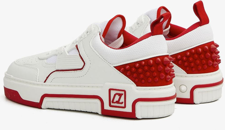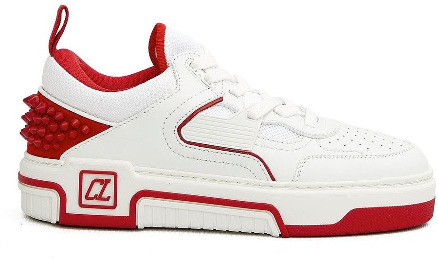 Step into the spotlight with these striking ASTROLOUBI SNEAKERS. Crafted in white and red leather, these eye-catching kicks feature edgy spikes at the back and the iconic CL monogram on the side. With a lace-up closure, rear loop tab, and durable rubber sole, these sneakers are as comfortable as they are stylish. Whether you're hitting the streets or making a statement at a party, these Italian-sized sneakers will take your look to the next level.
