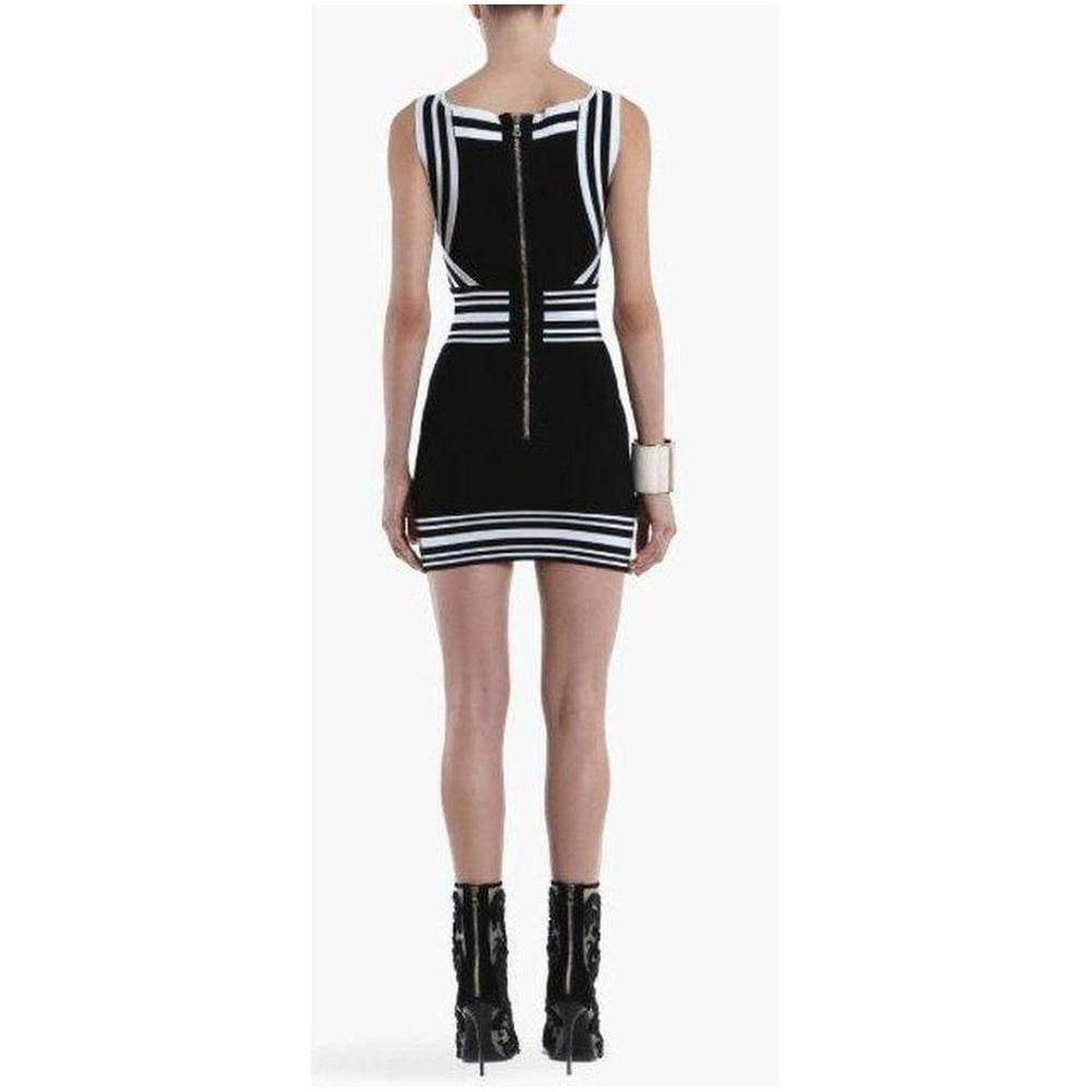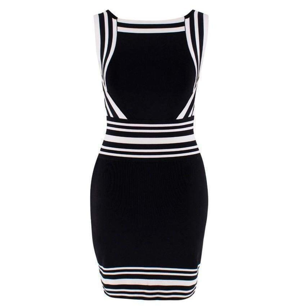 Black Square-neck Stripe-trim Knit Dress 6504312M