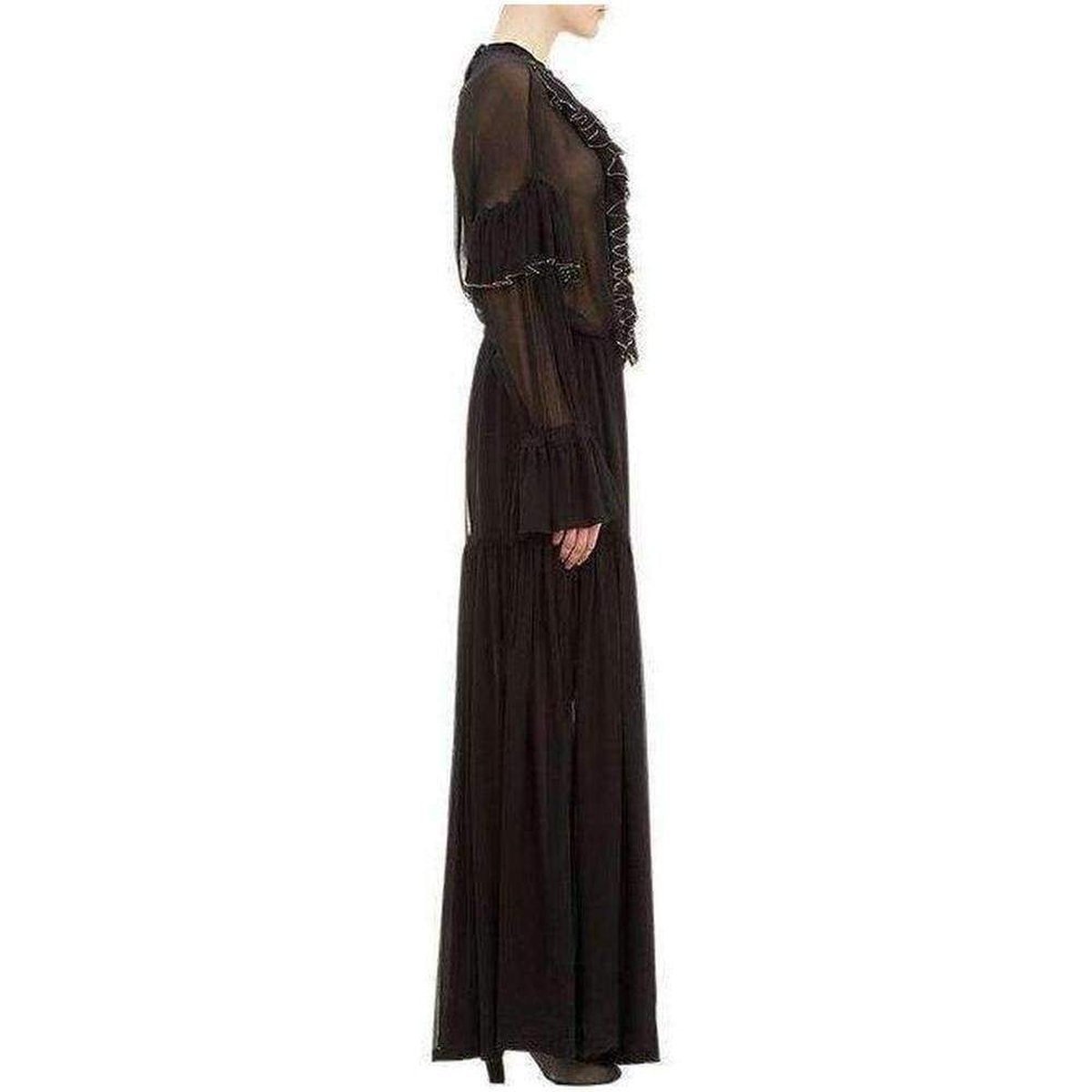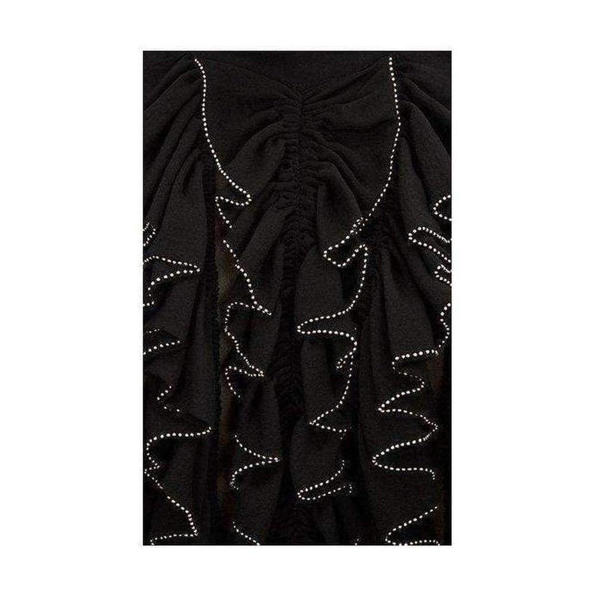 Dries Van Noten black silk chiffon tiered gown styled at front and shoulders with beaded ruffles