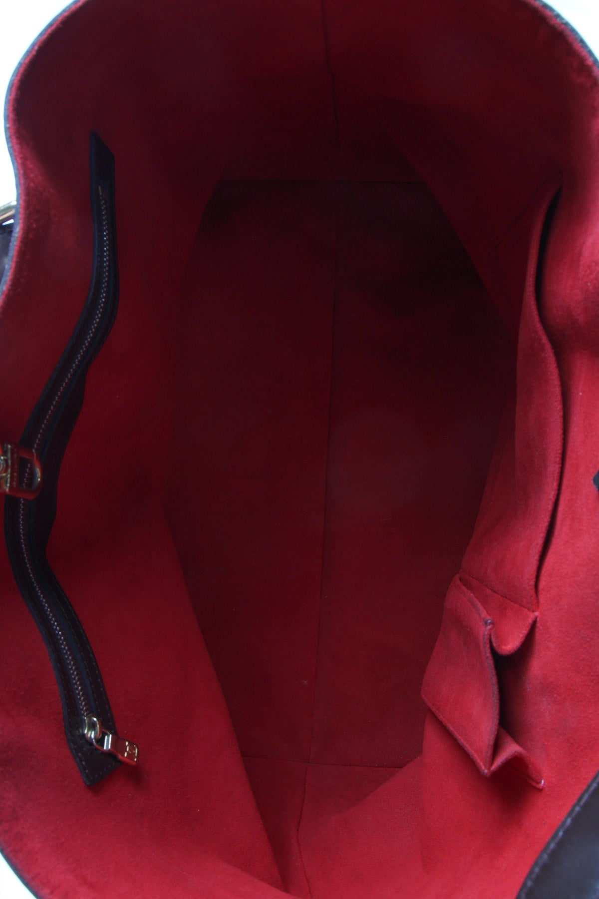 This purse is in great condition with minor wear/discoloration on the corners, edges, and interior, scratches on the hardware, and creasing/scratches on the leather.