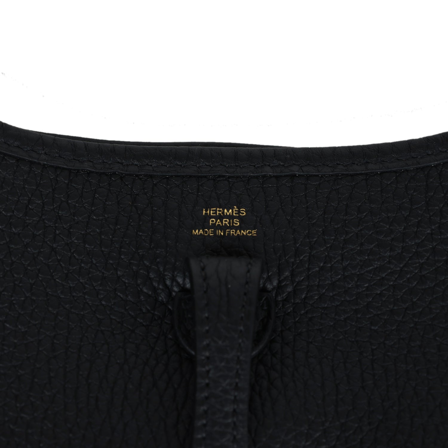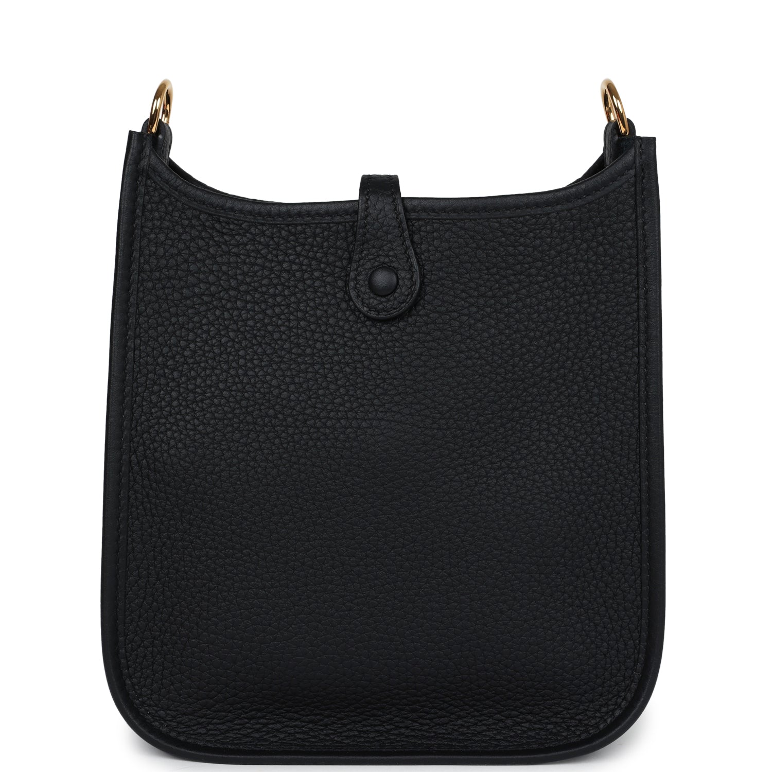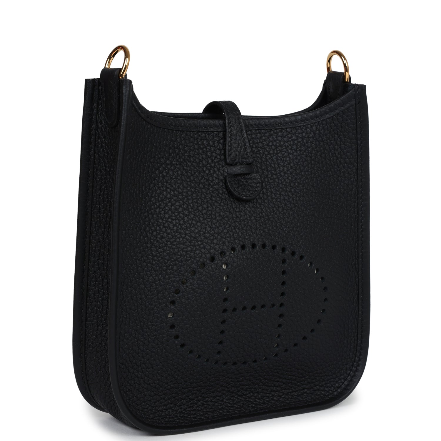 This Evelyne TPM is in Black clemence leather with gold hardware and features tonal stitching stitching, pull tab top closure and a removable Black and Ebene canvas and leather shoulder/crossbody strap.