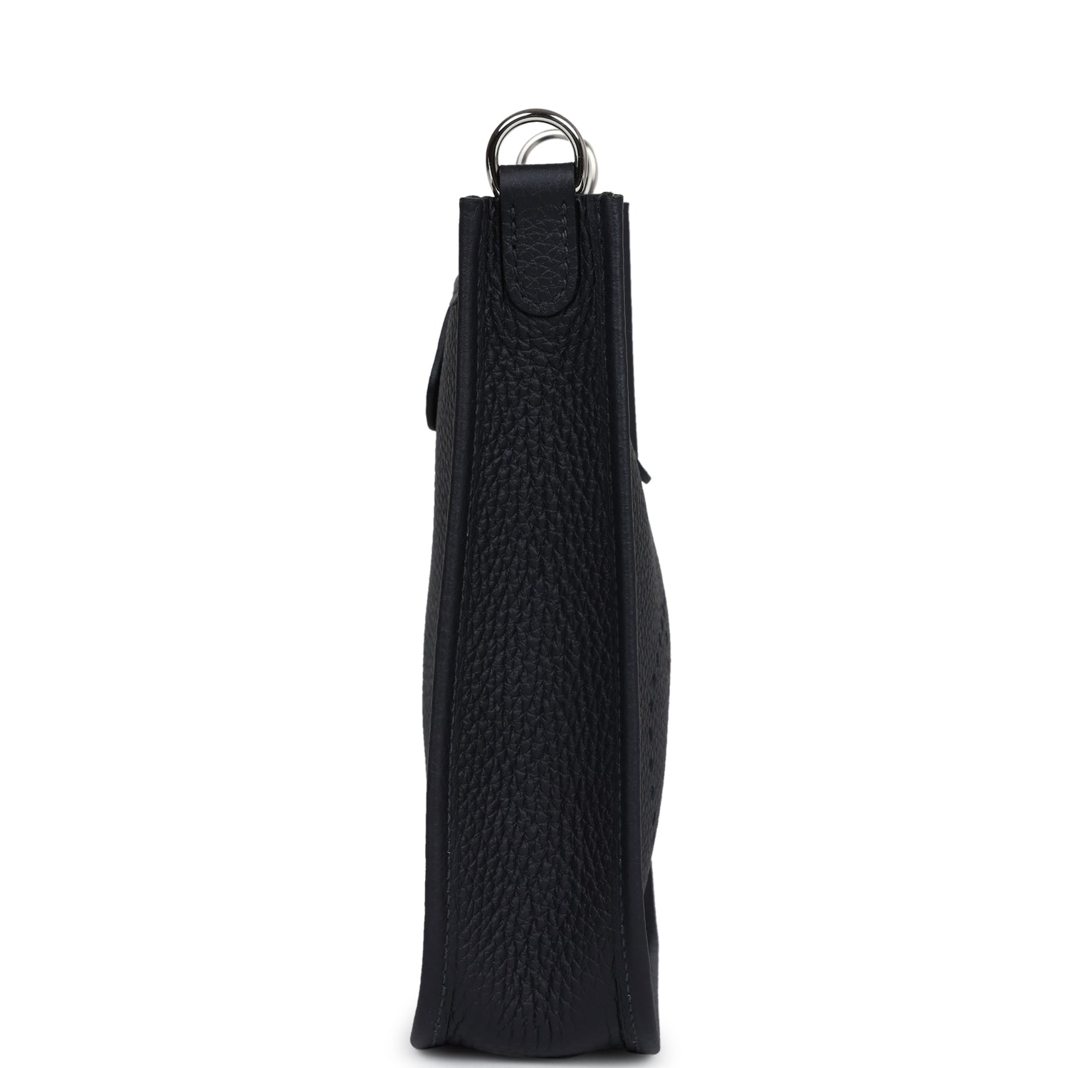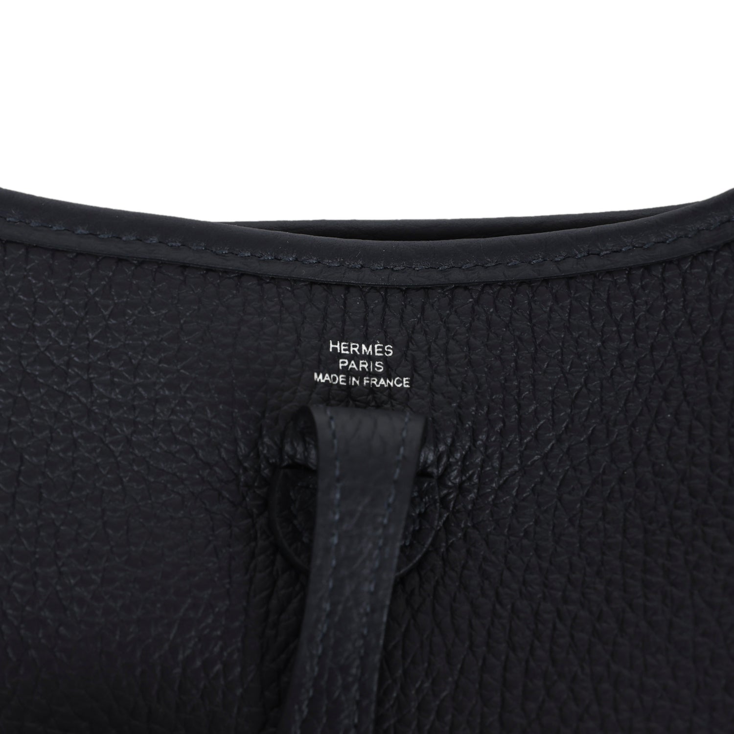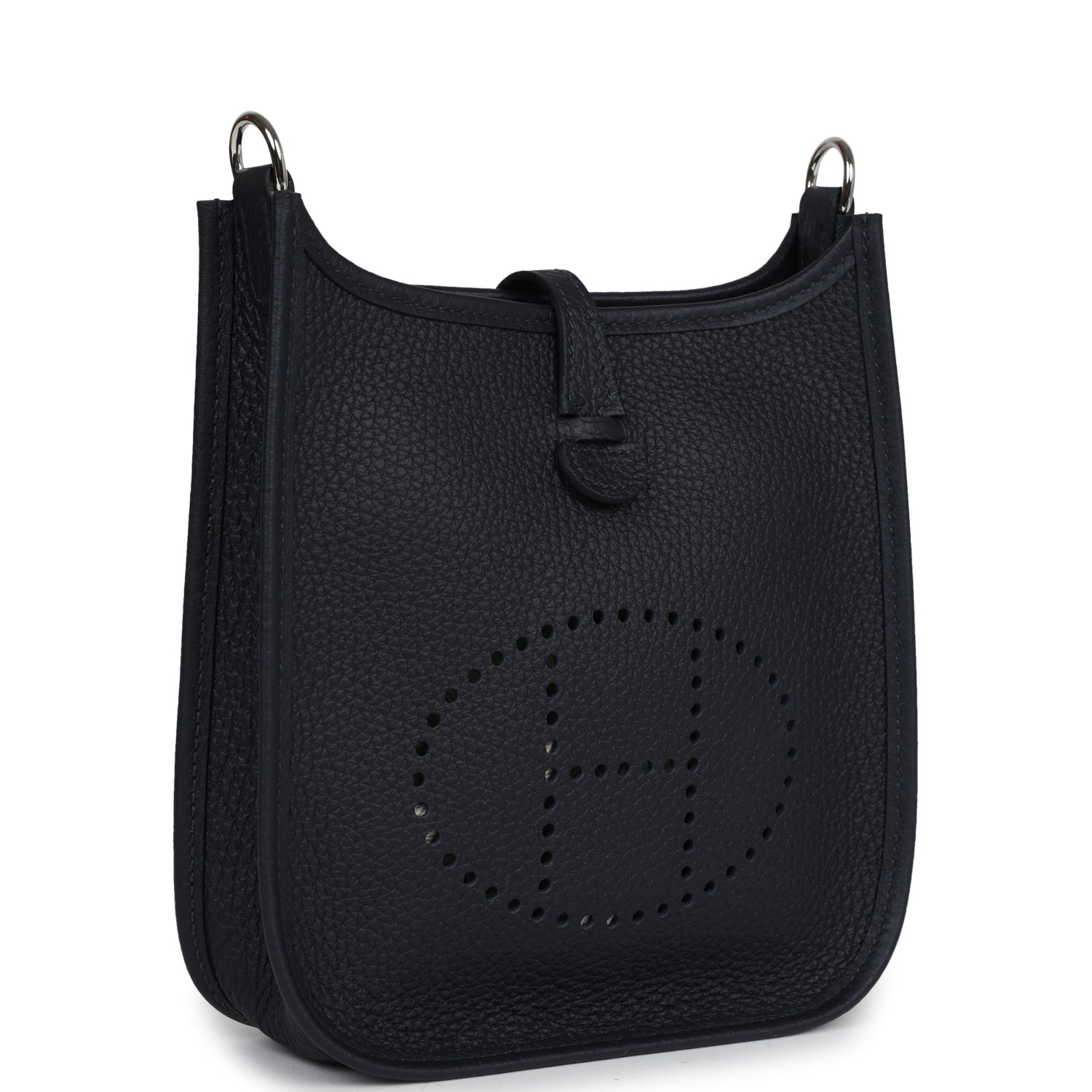 This Hermes Evelyne TPM is in Caban clemence leather with palladium hardware, tonal stitching, large perforated H in circle (front), pull tab top snap closure and removable fabric shoulder/crossbody strap.