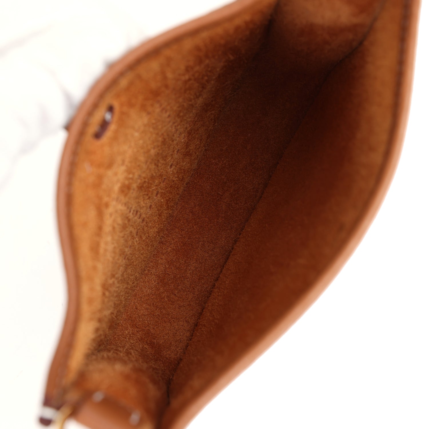 This Evelyne TPM is in Gold clemence leather with gold hardware and features contrast stitching stitching, pull tab top closure and a removable Gold canvas and leather shoulder/crossbody strap.