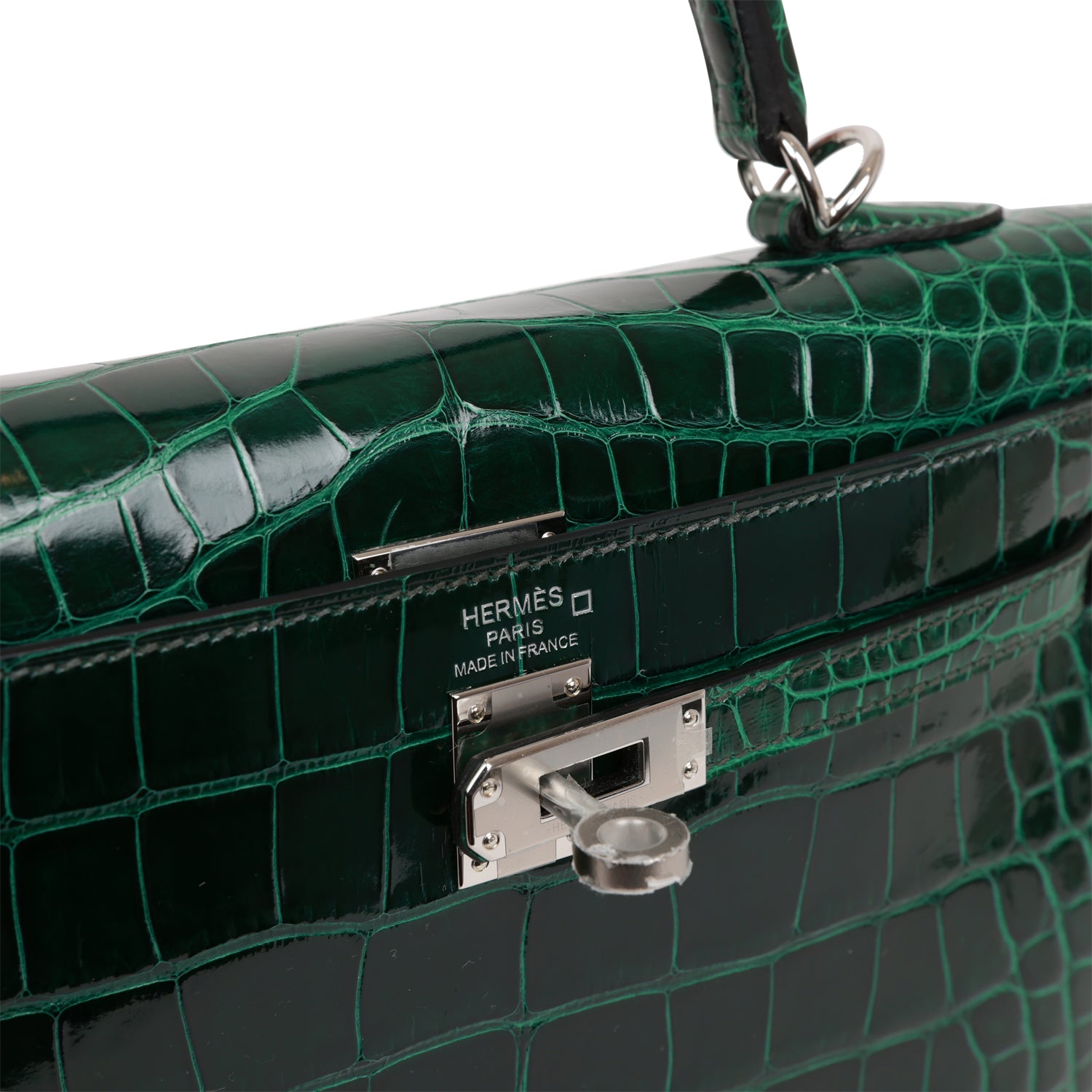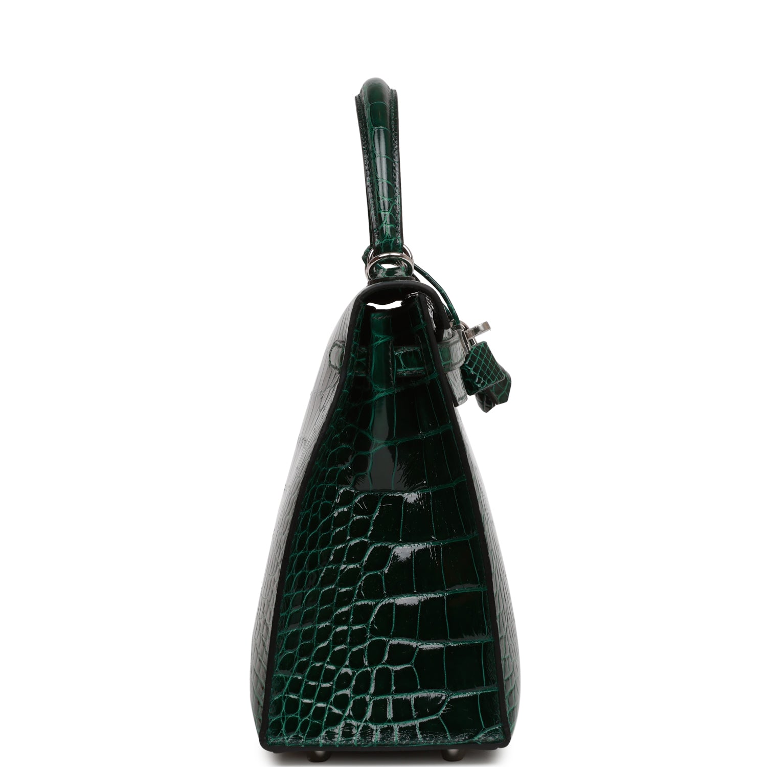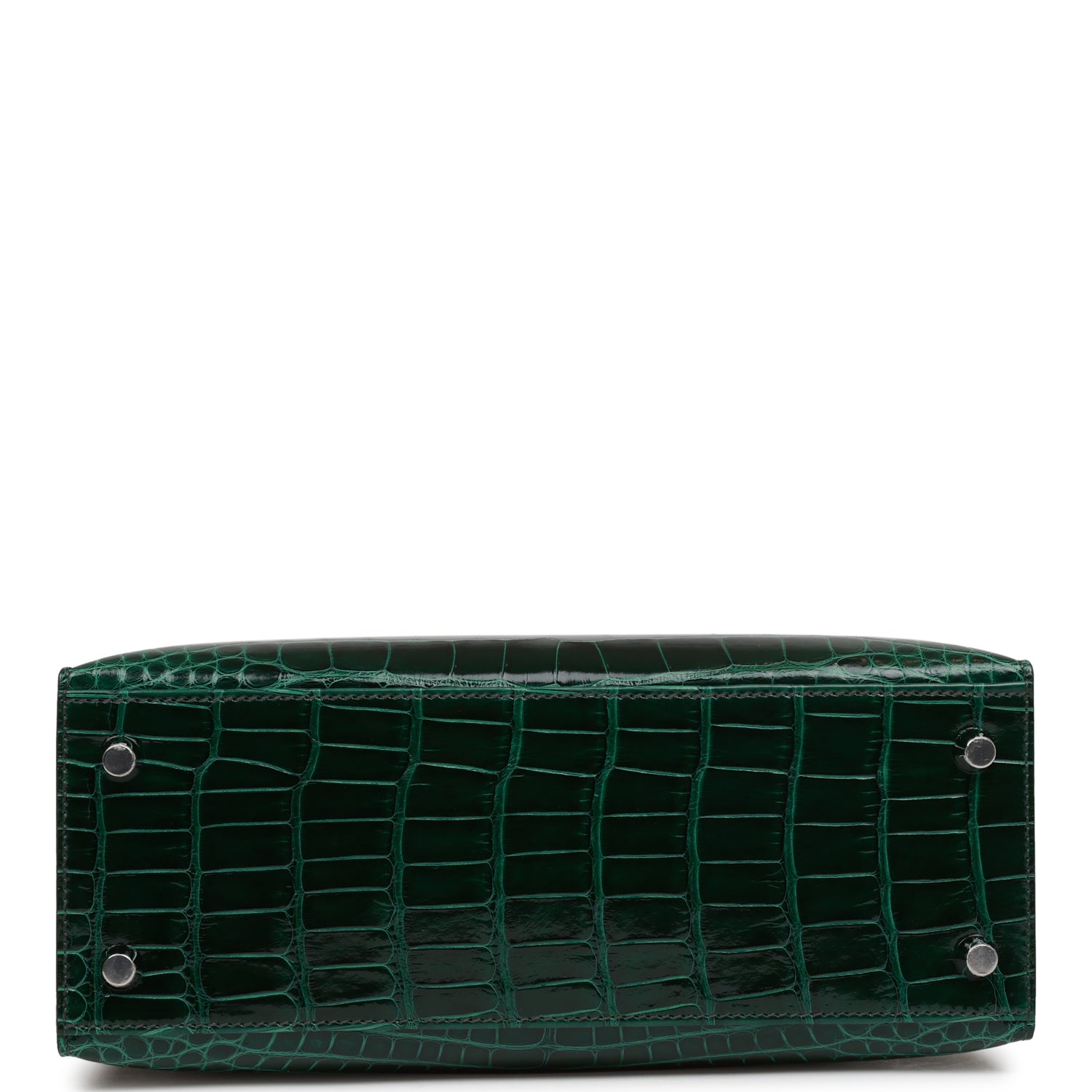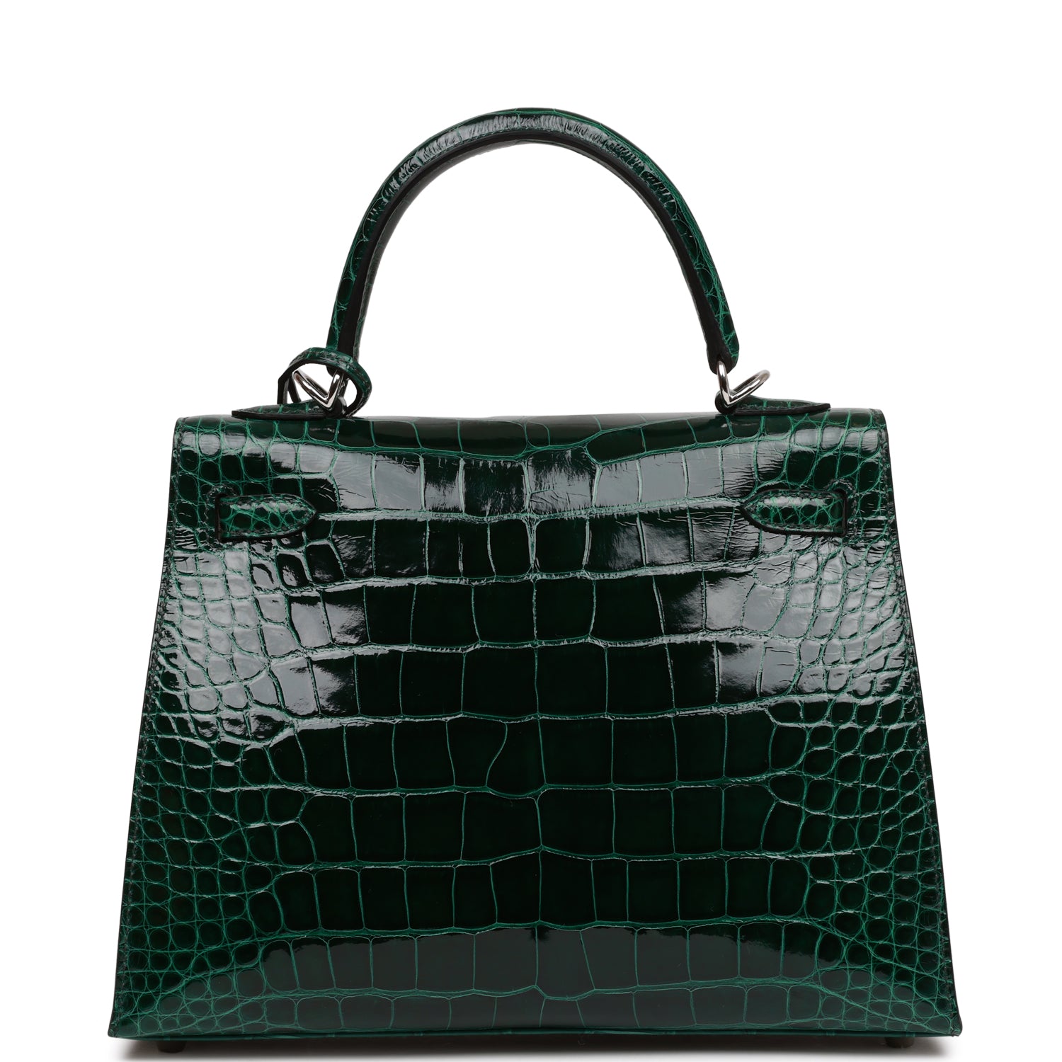 Hermes Kelly 25 Sellier Vert Fonce Shiny Alligator Palladium Hardware