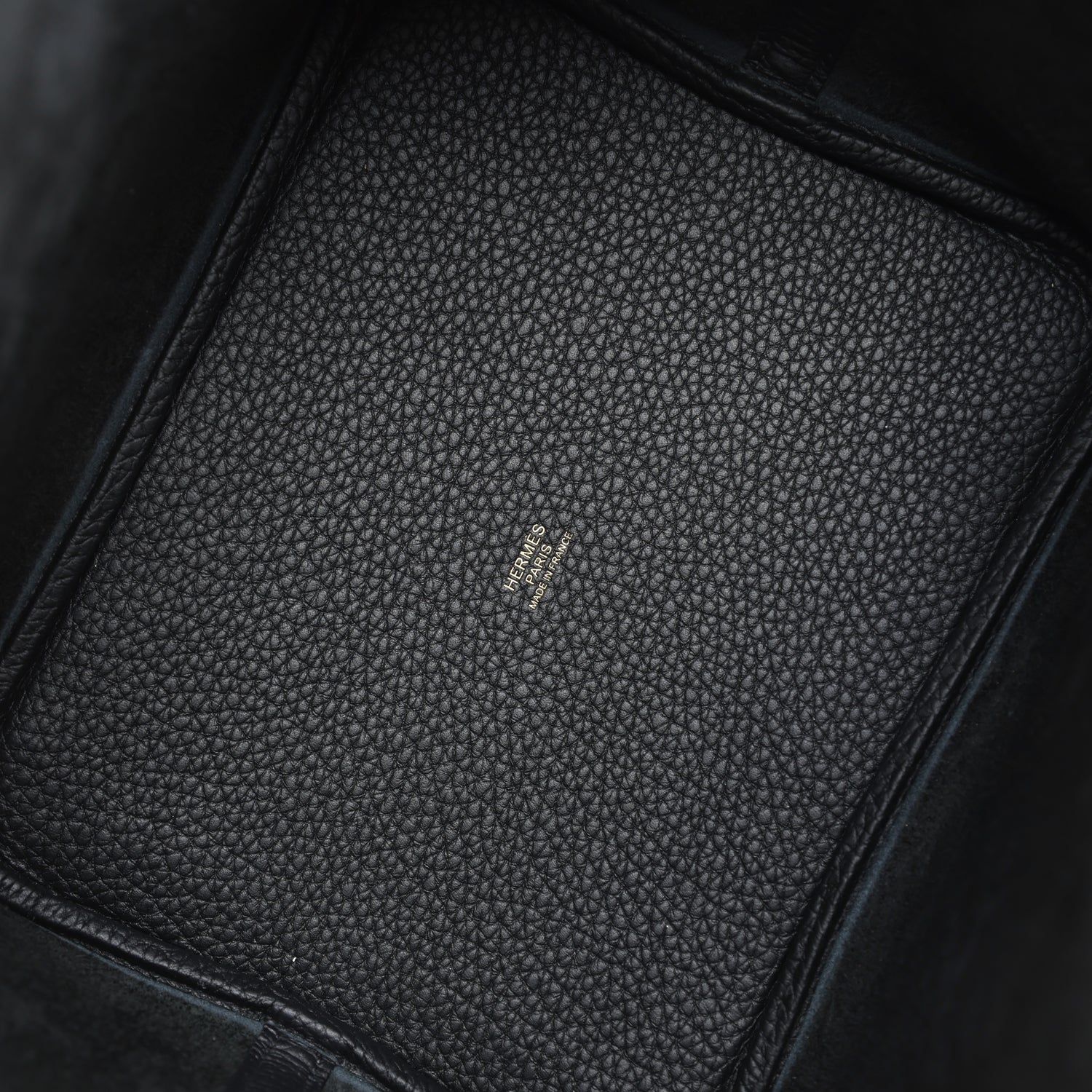 This Picotin Lock 22 is in Black clemence leather with gold hardware and has tonal stitching with two top handles.