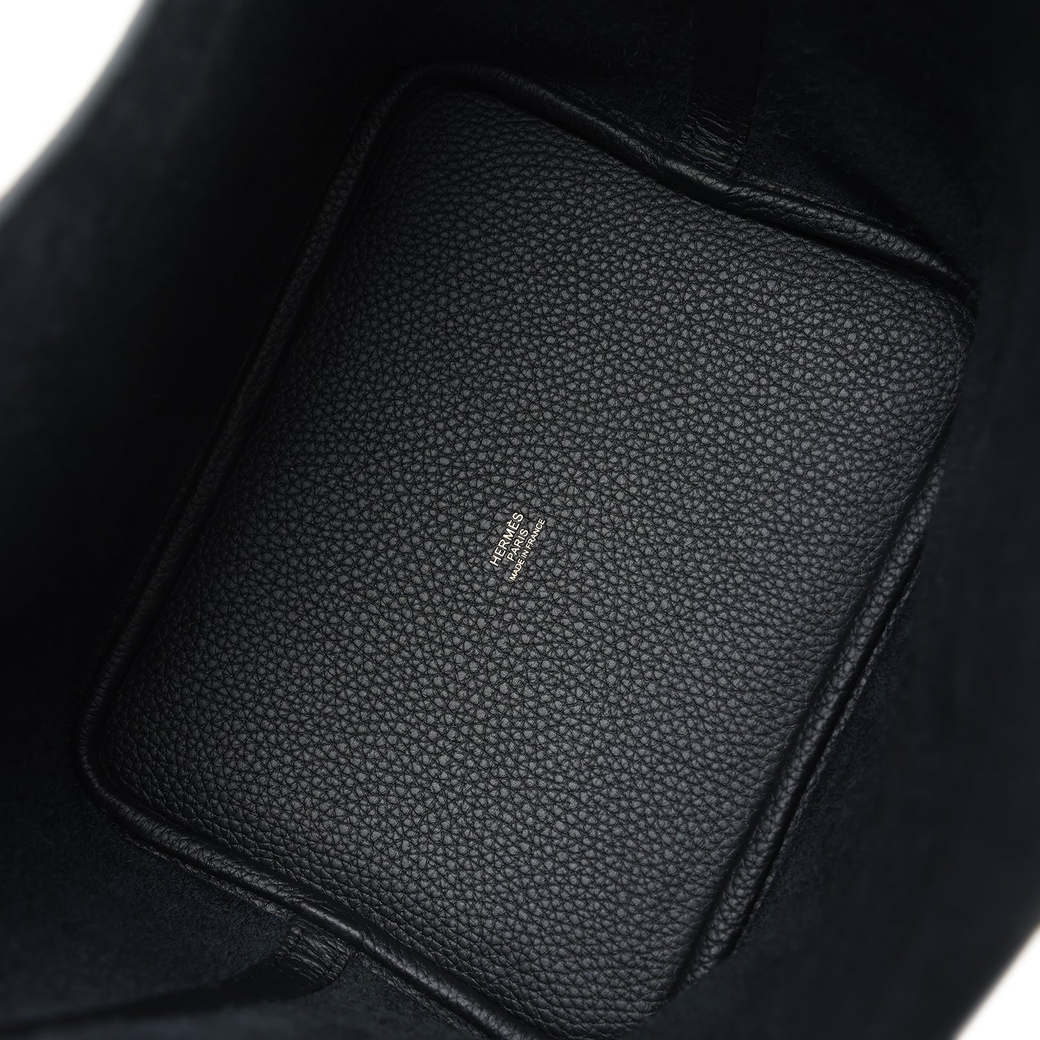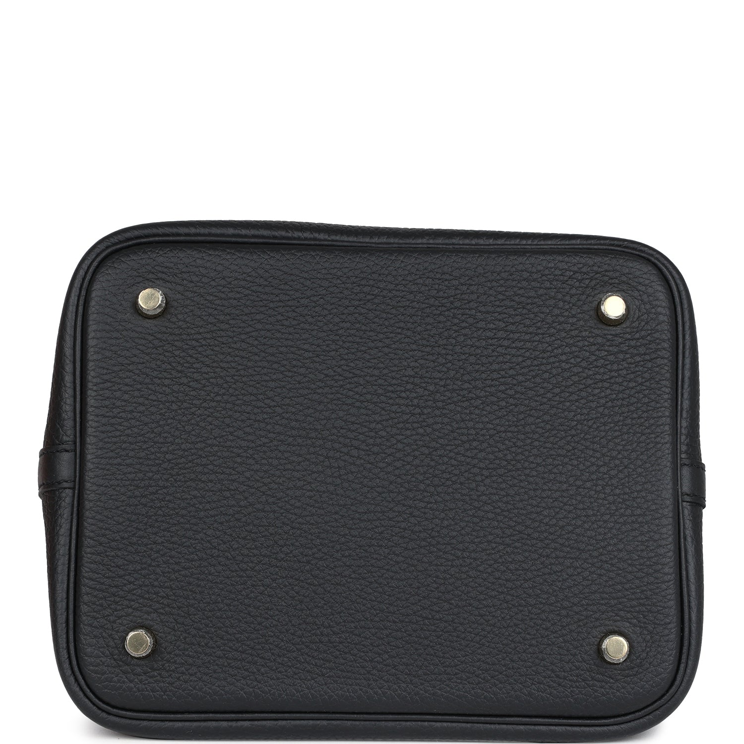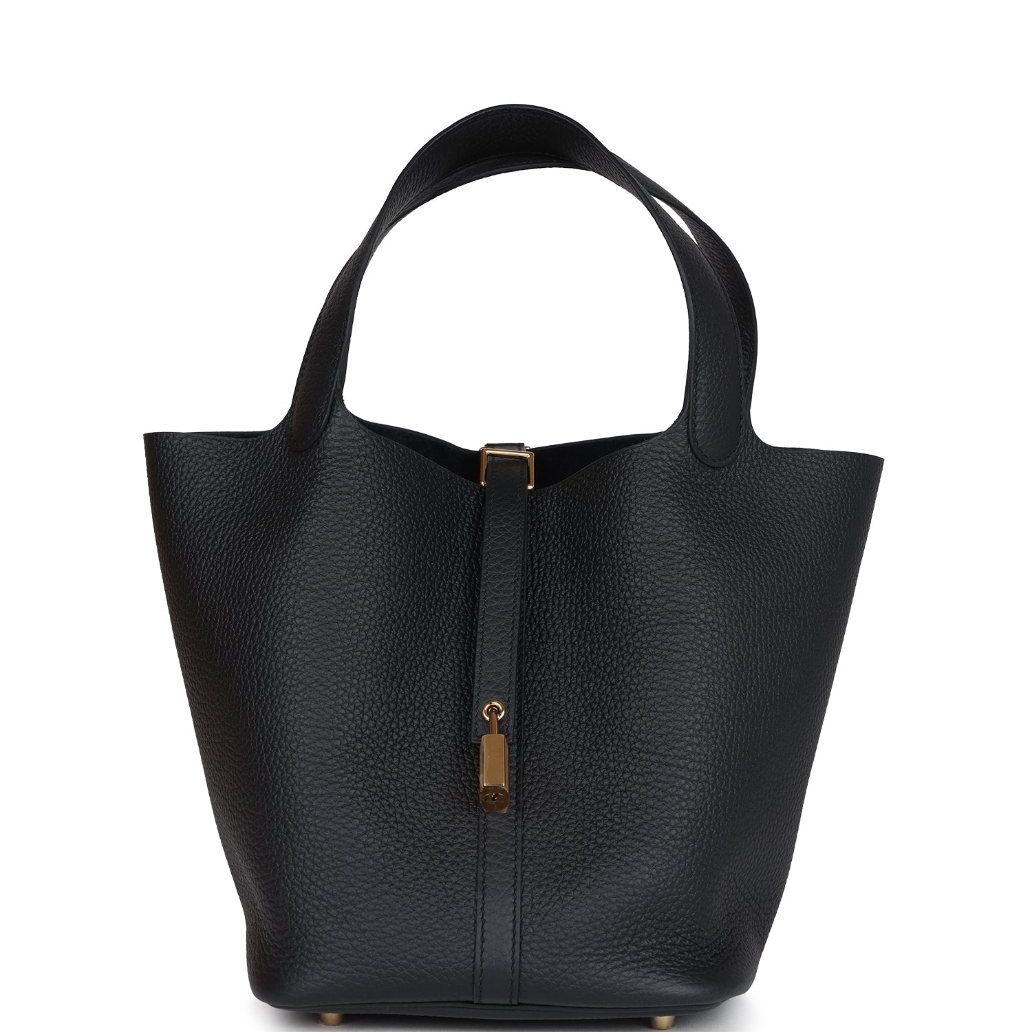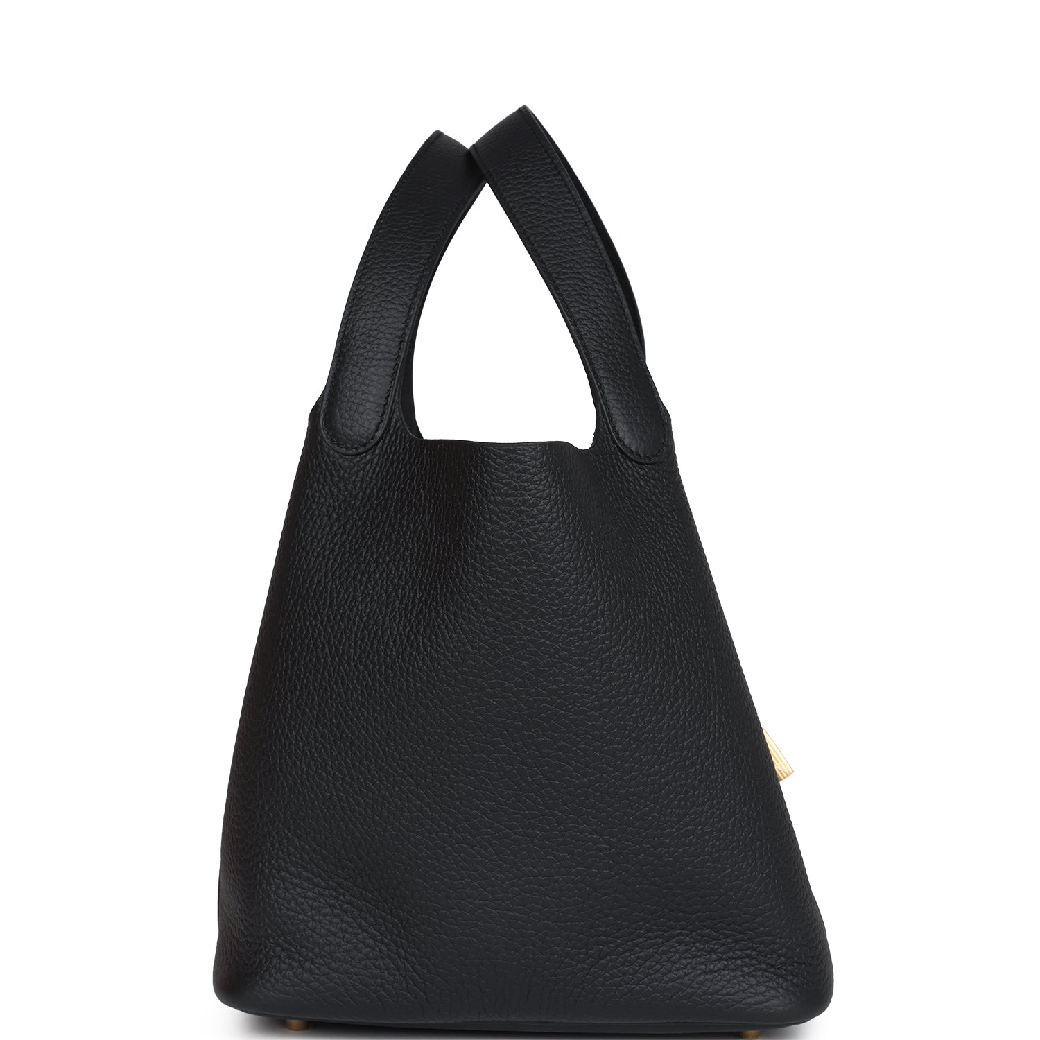 This Picotin Lock 22 is in Black clemence leather with gold hardware and has tonal stitching with two top handles.