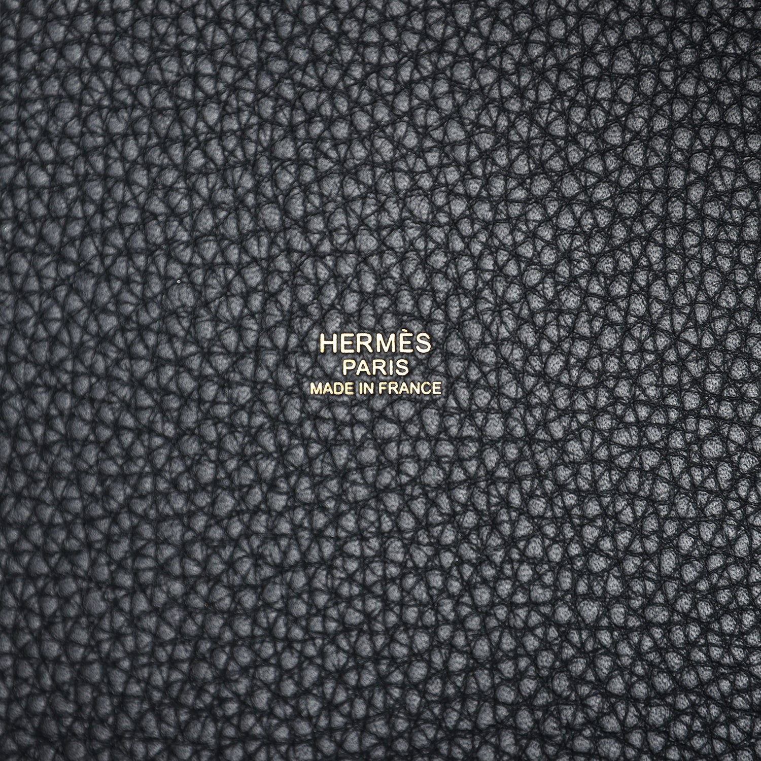 This Picotin Lock 22 is in Black clemence leather with gold hardware and has tonal stitching with two top handles.