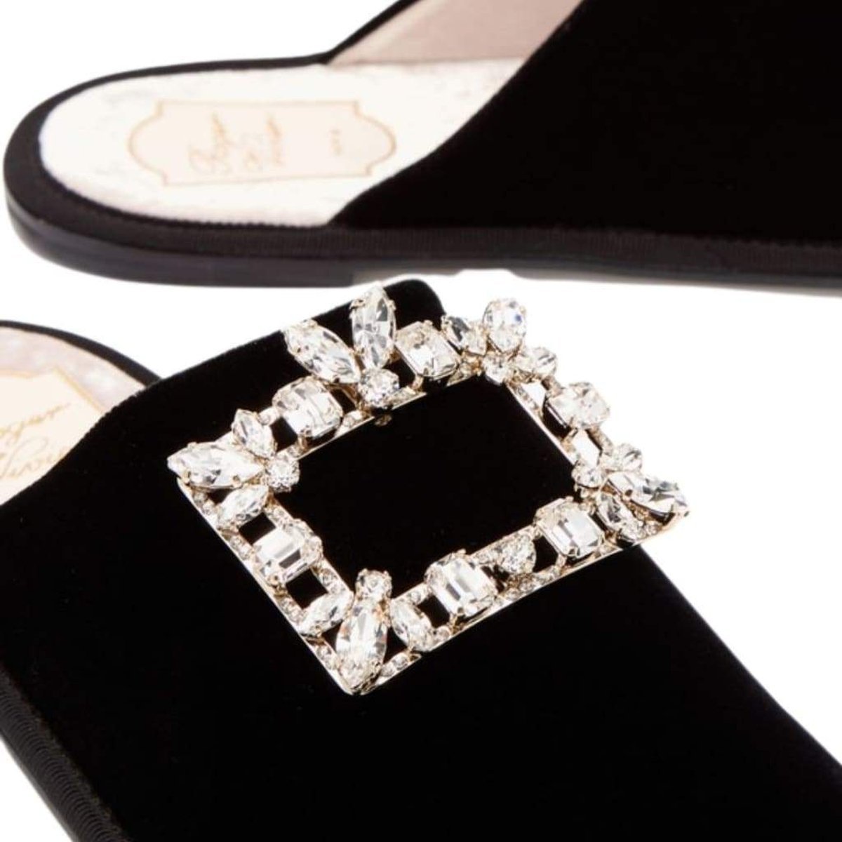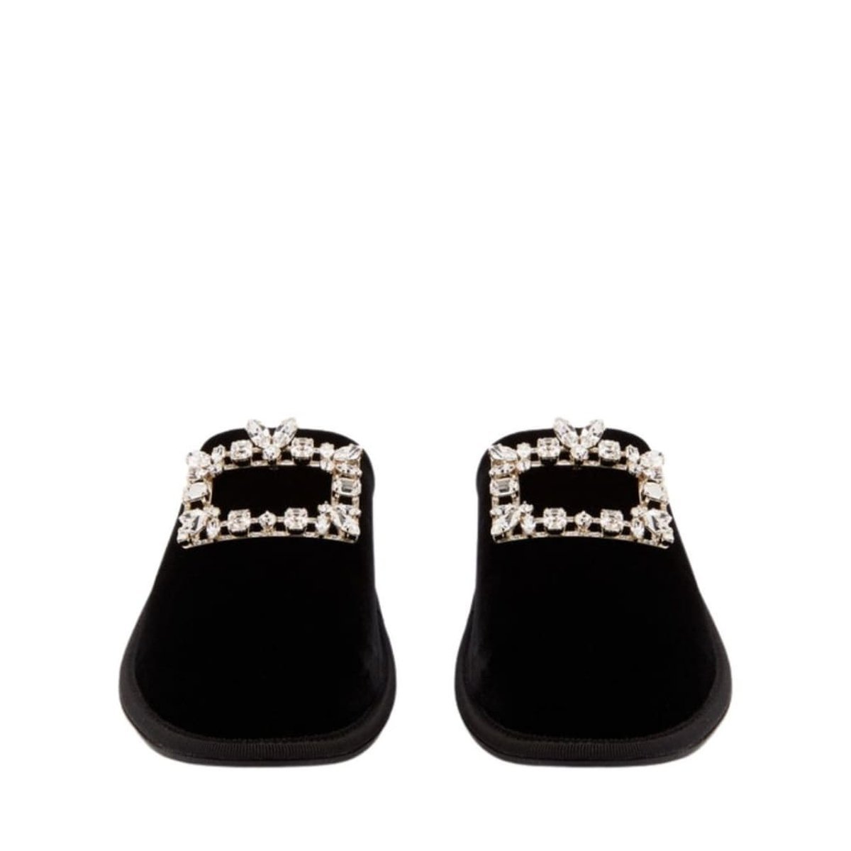 The embellished buckle decorating Roger Vivier's black Hotel Vivier slippers is a modern rendition of a house icon that can be traced back to the mid-1960s. They're the product of Italian craftsmanship, made from plush velvet and leather and trimmed with tactile grosgrain.