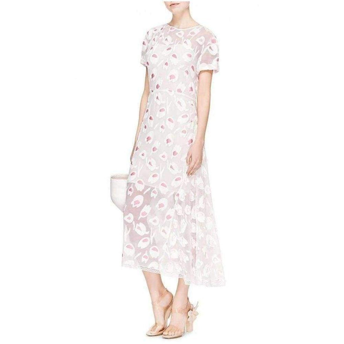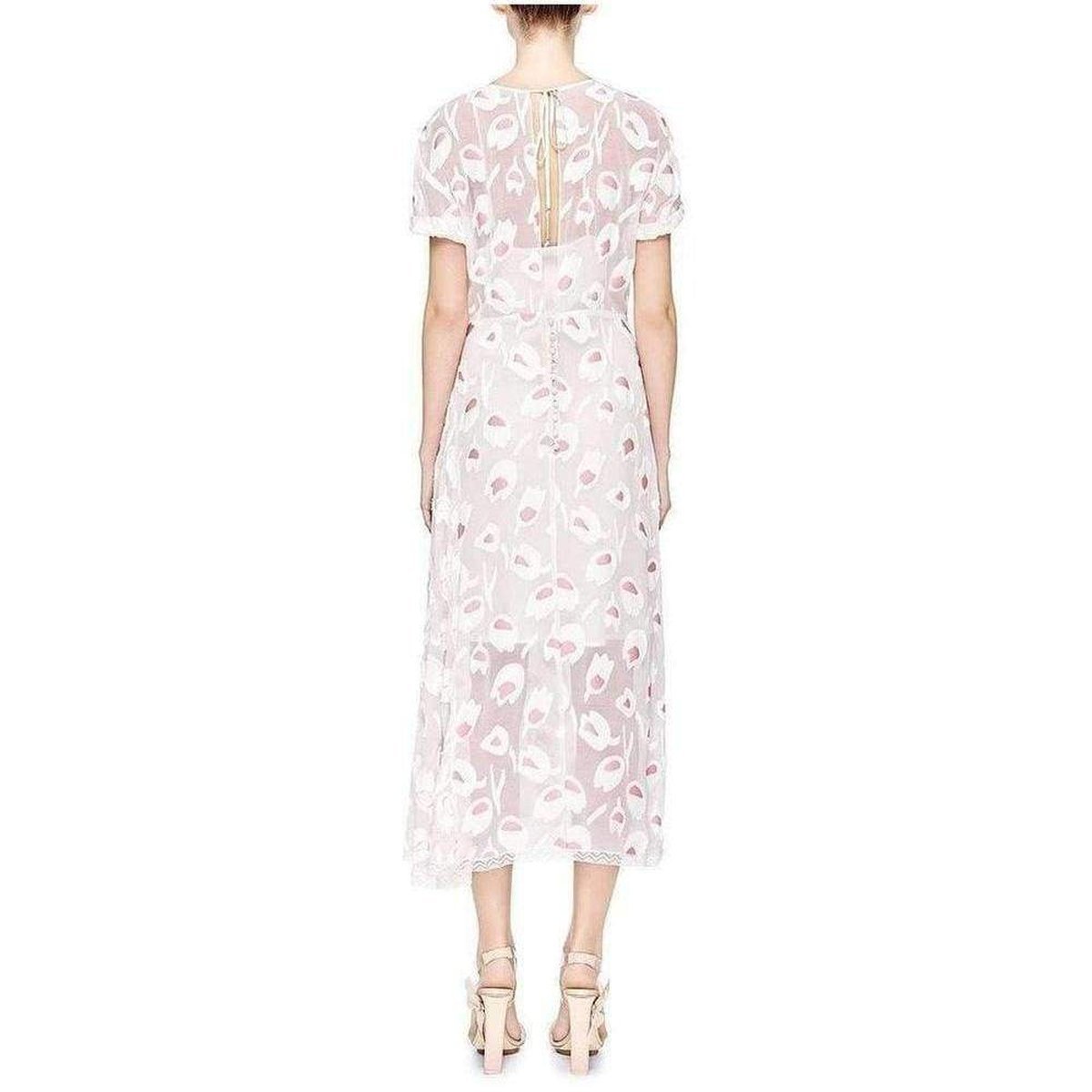 This dress is crafted in tactile, flocked silk chiffon with a charming floral pattern.
