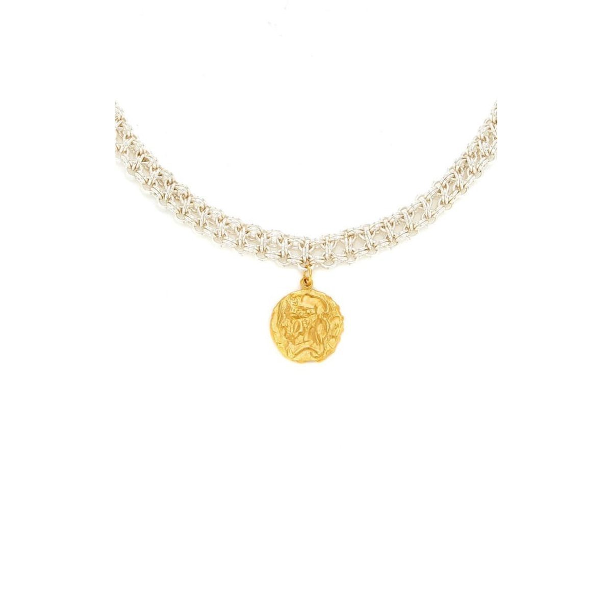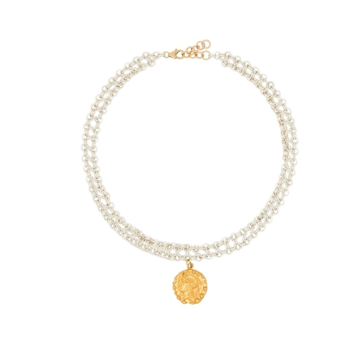 Alighieri's 'The Woven Tapestry Amulet' necklace is a work of art with its gold-plated bronze suspended from a thick sterling silver chain.