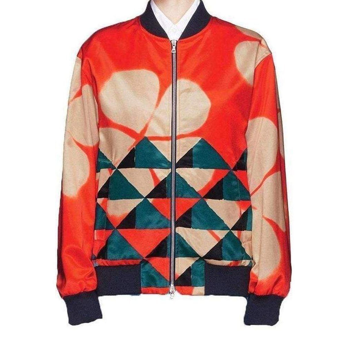 Rib-knit collar, cuffs, bottom.
