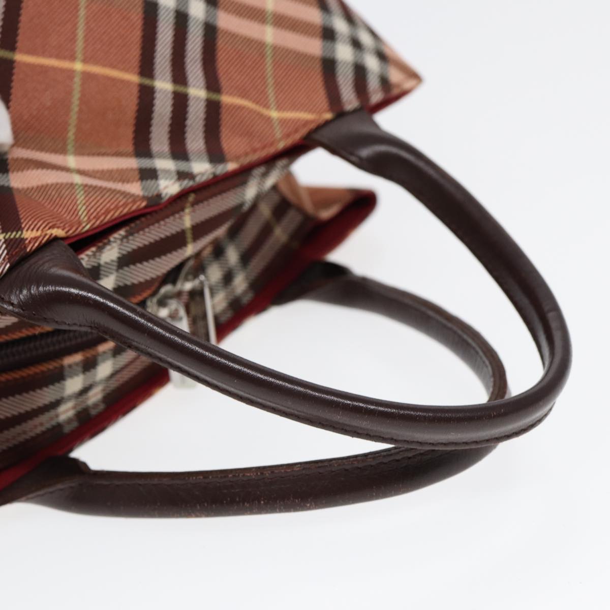 BURBERRY Nova Check Blue Label Hand Bag Nylon Brown Auth ti2040