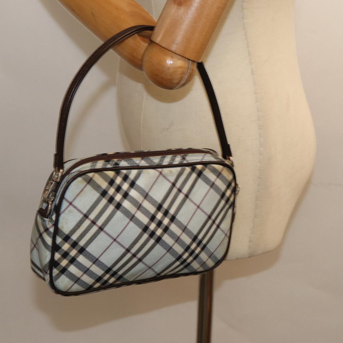 BURBERRY Nova Check Blue Label Hand Bag Nylon Light Blue Auth bs15360