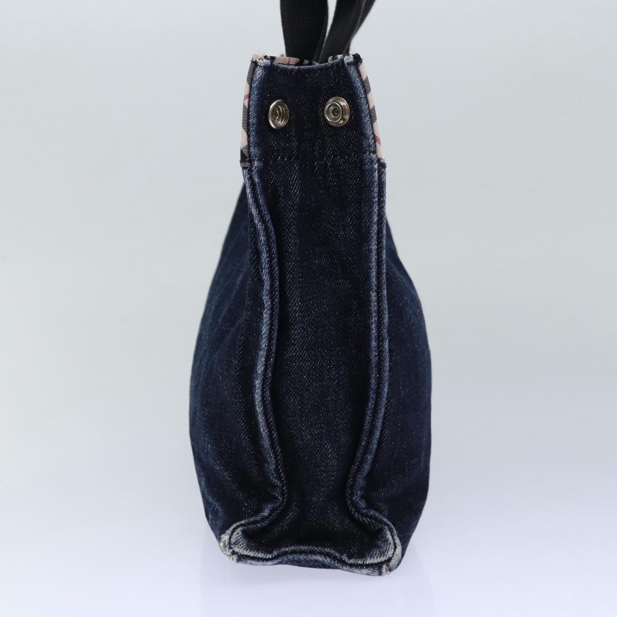Burberry Nova Check Blue Label Tote Bag Denim Beige Navy Silver Auth bs16584