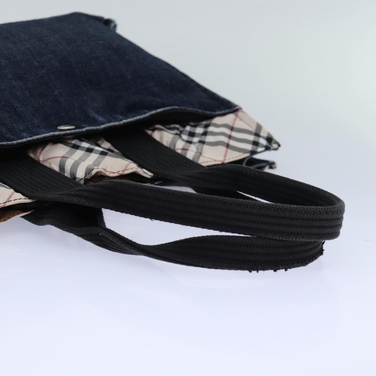 BURBERRY Nova Check Blue Label Tote Bag Denim Beige Navy Silver Auth bs16584