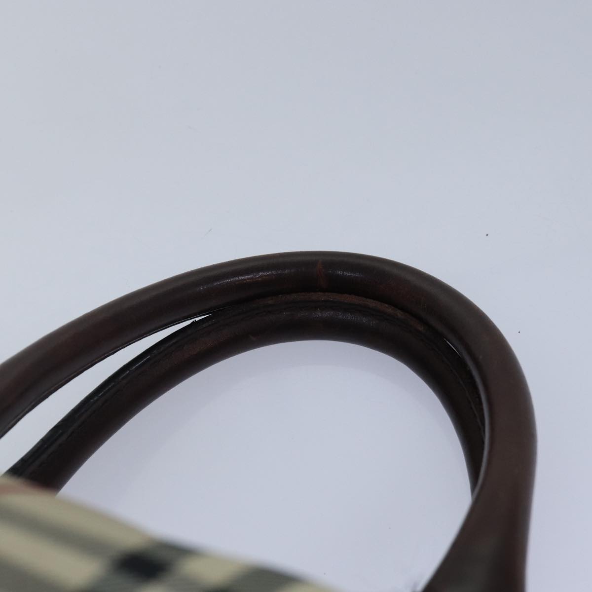 BURBERRY Nova Check Hand Bag Canvas Beige Silver Auth bs17030