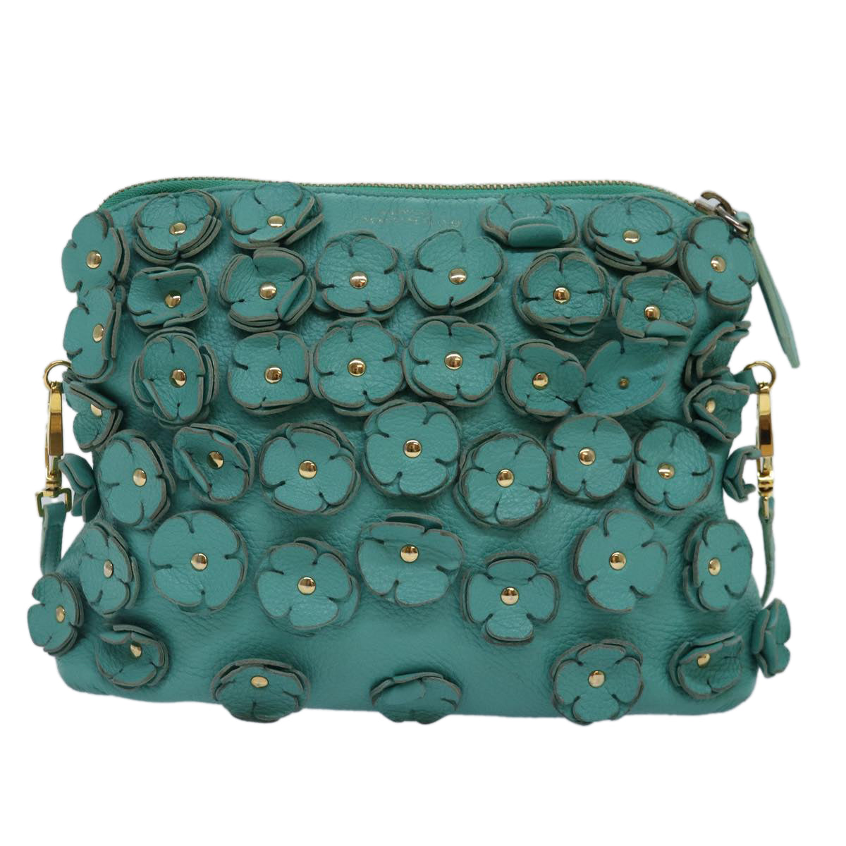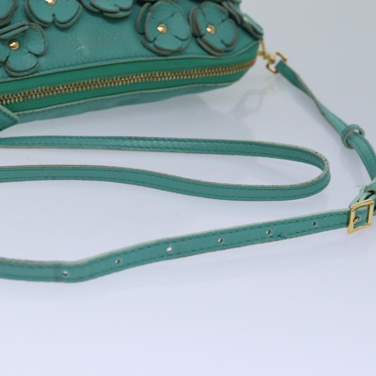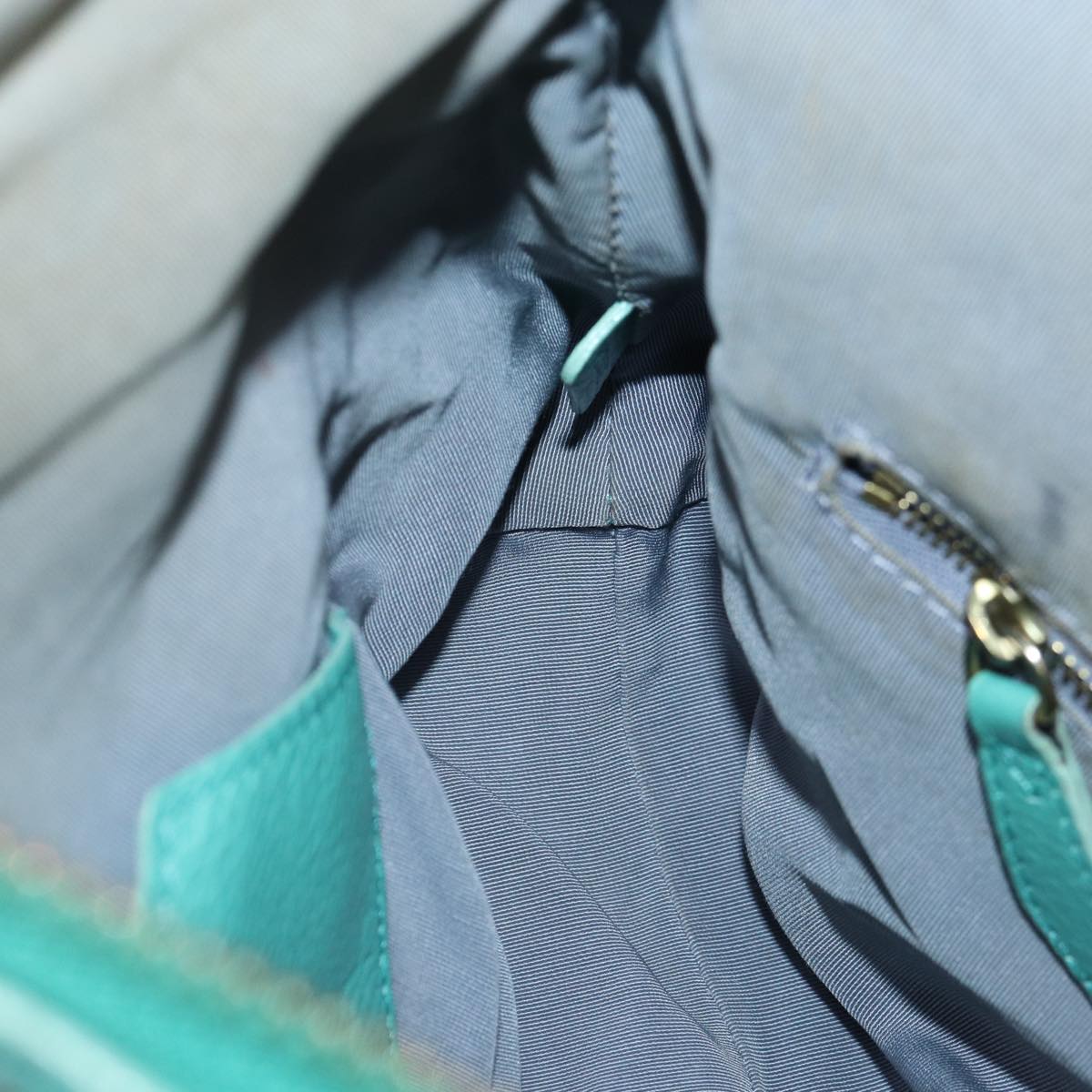 BURBERRY Shoulder Bag Leather Turquoise Blue Gold Auth ti2029