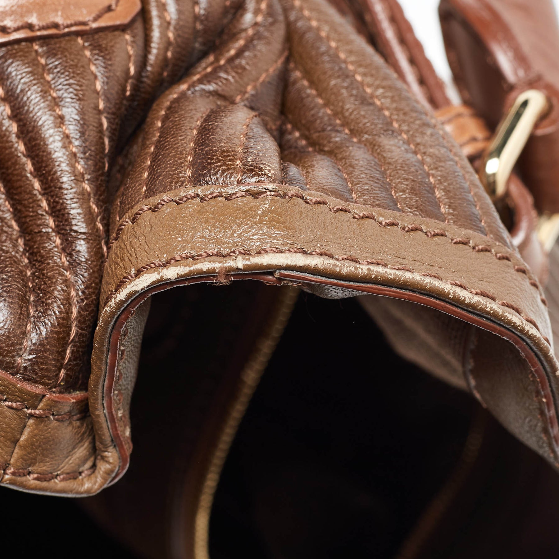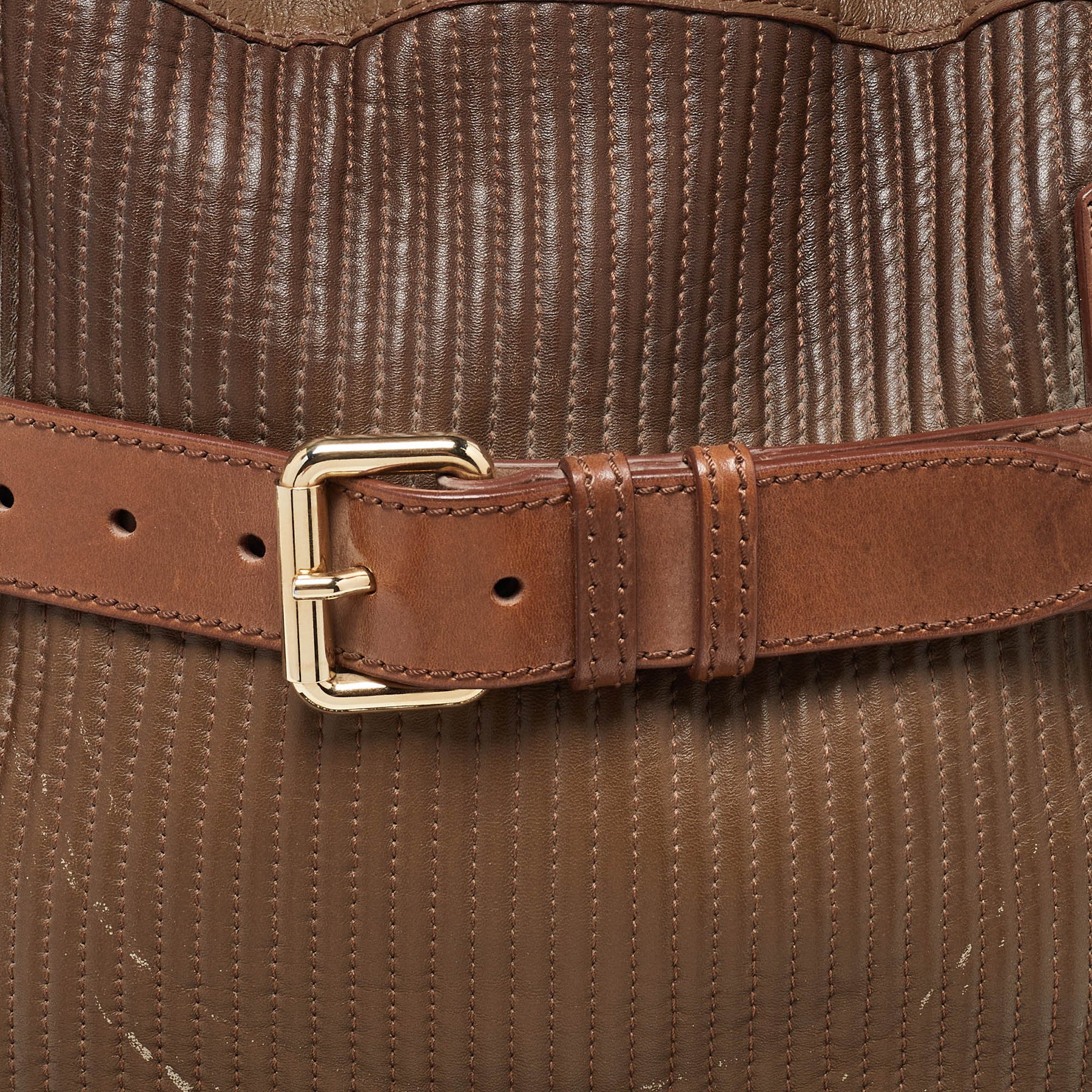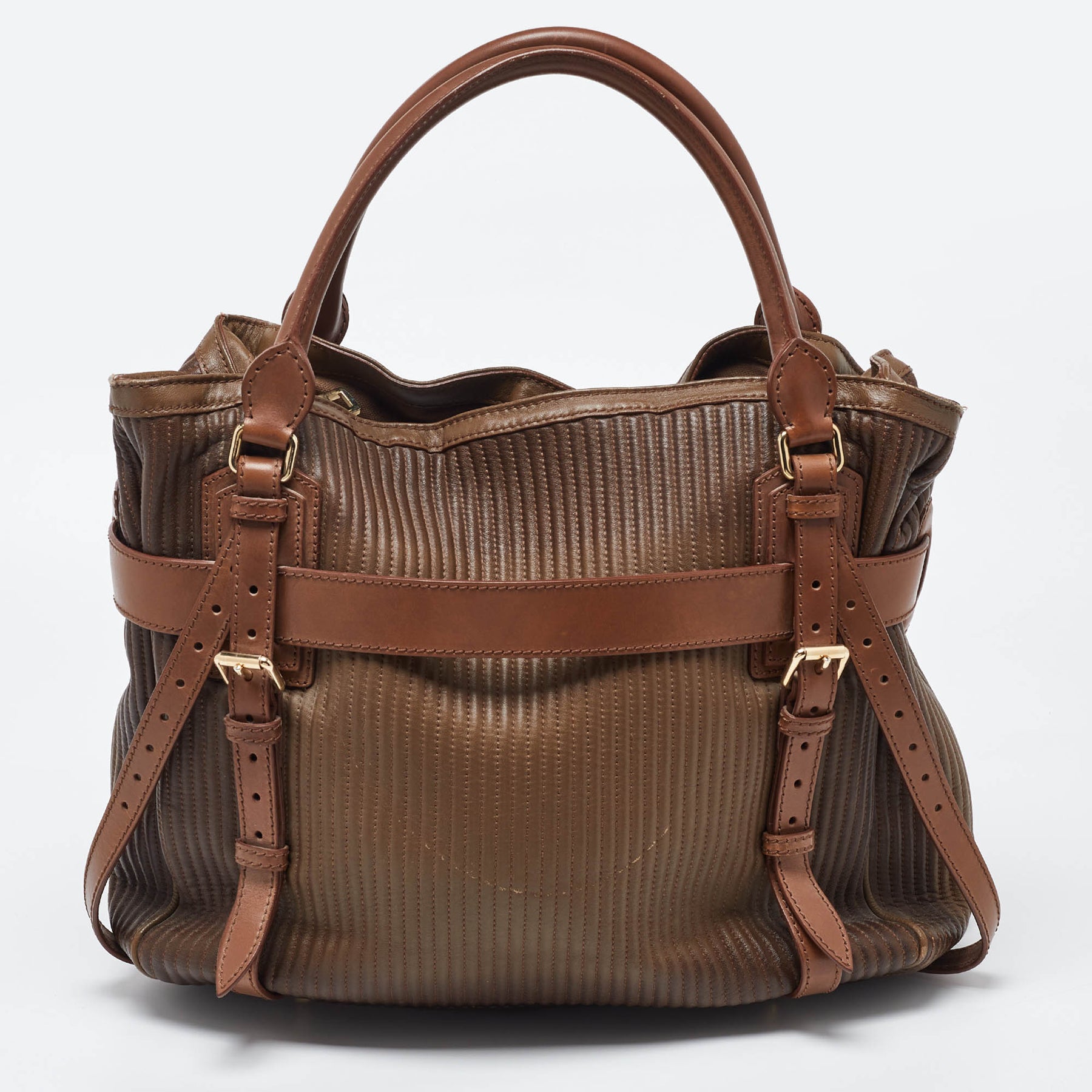 BURBERRY Two Tone Brown Leather Stitched Bridle Tote