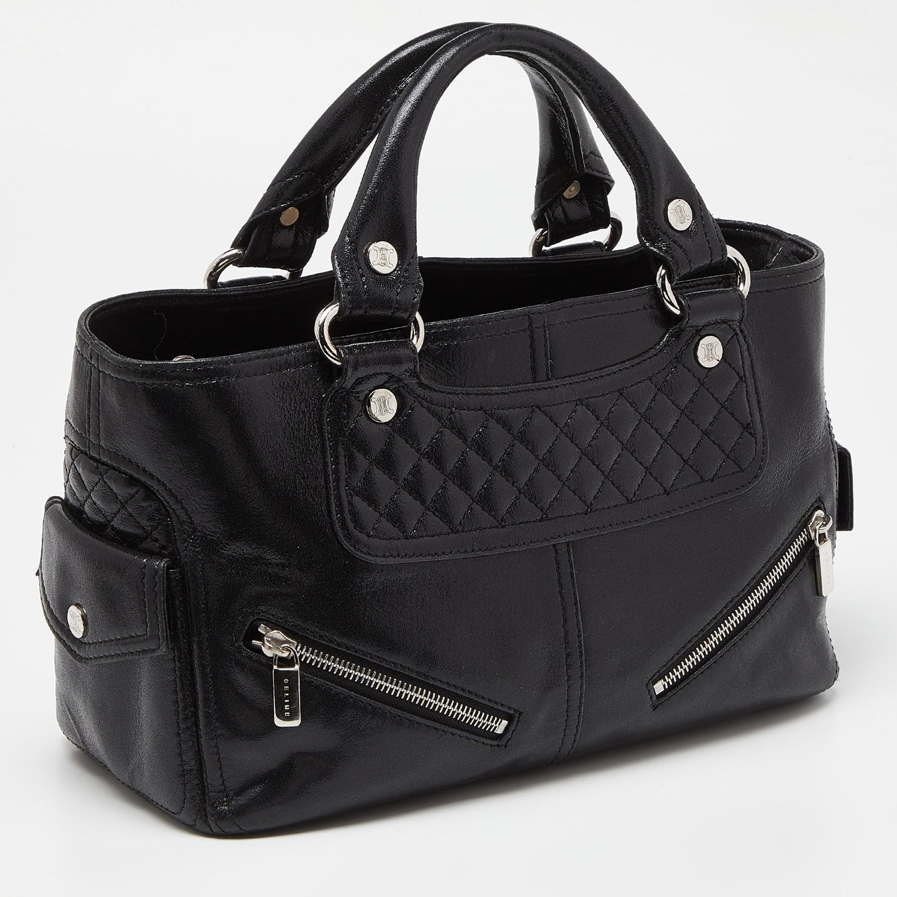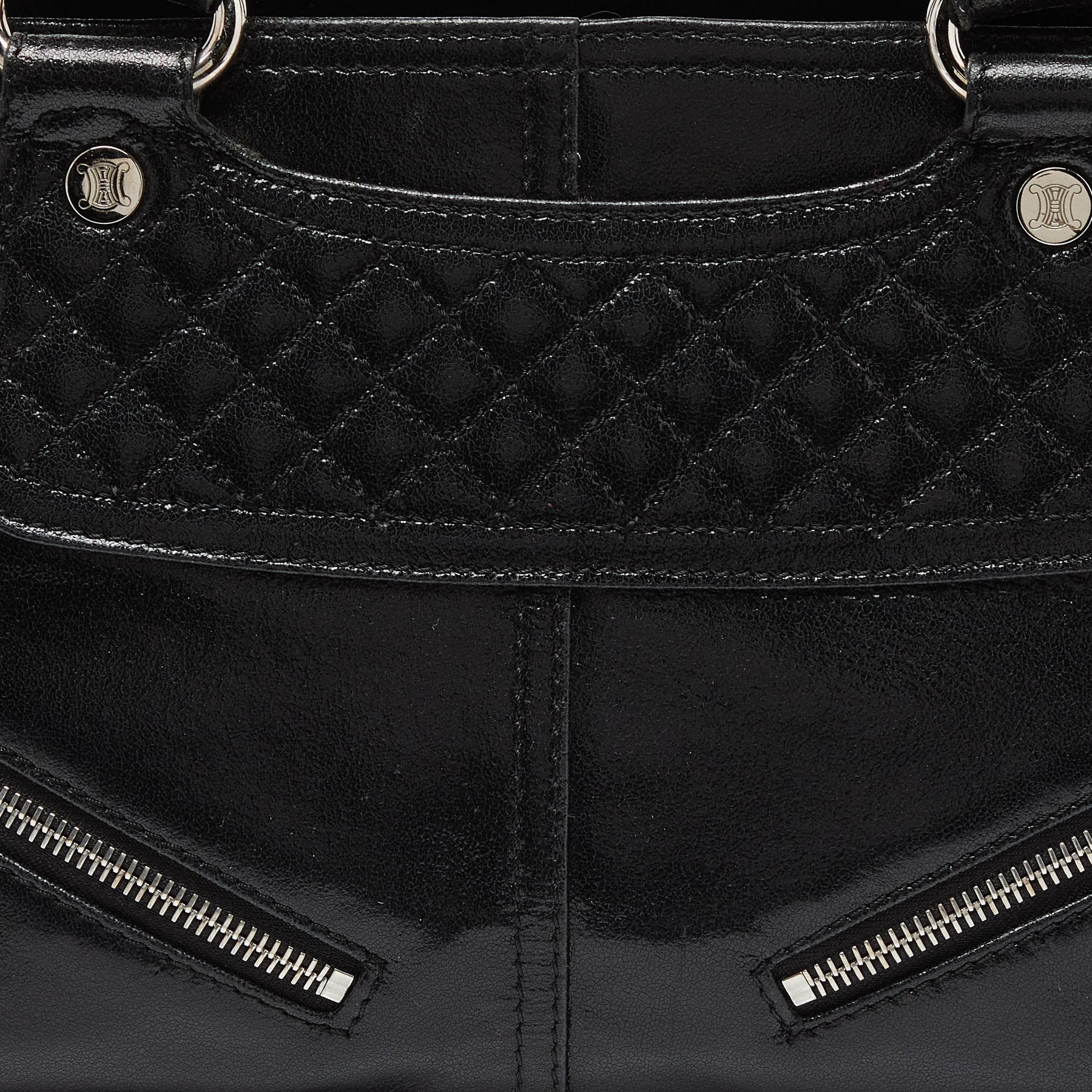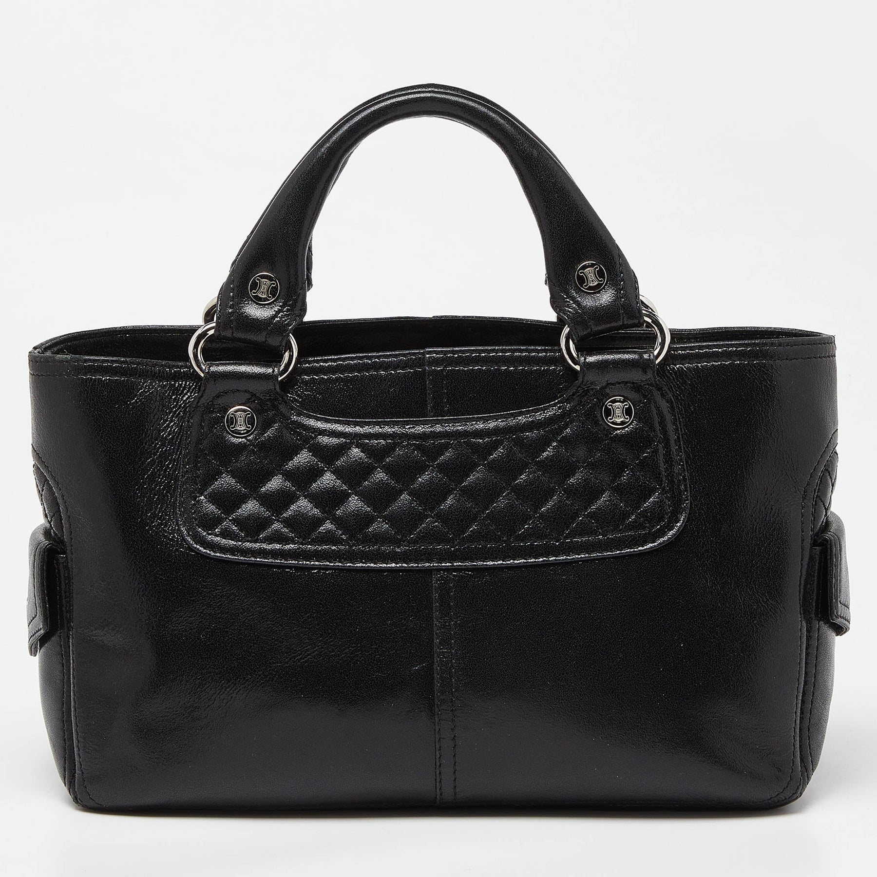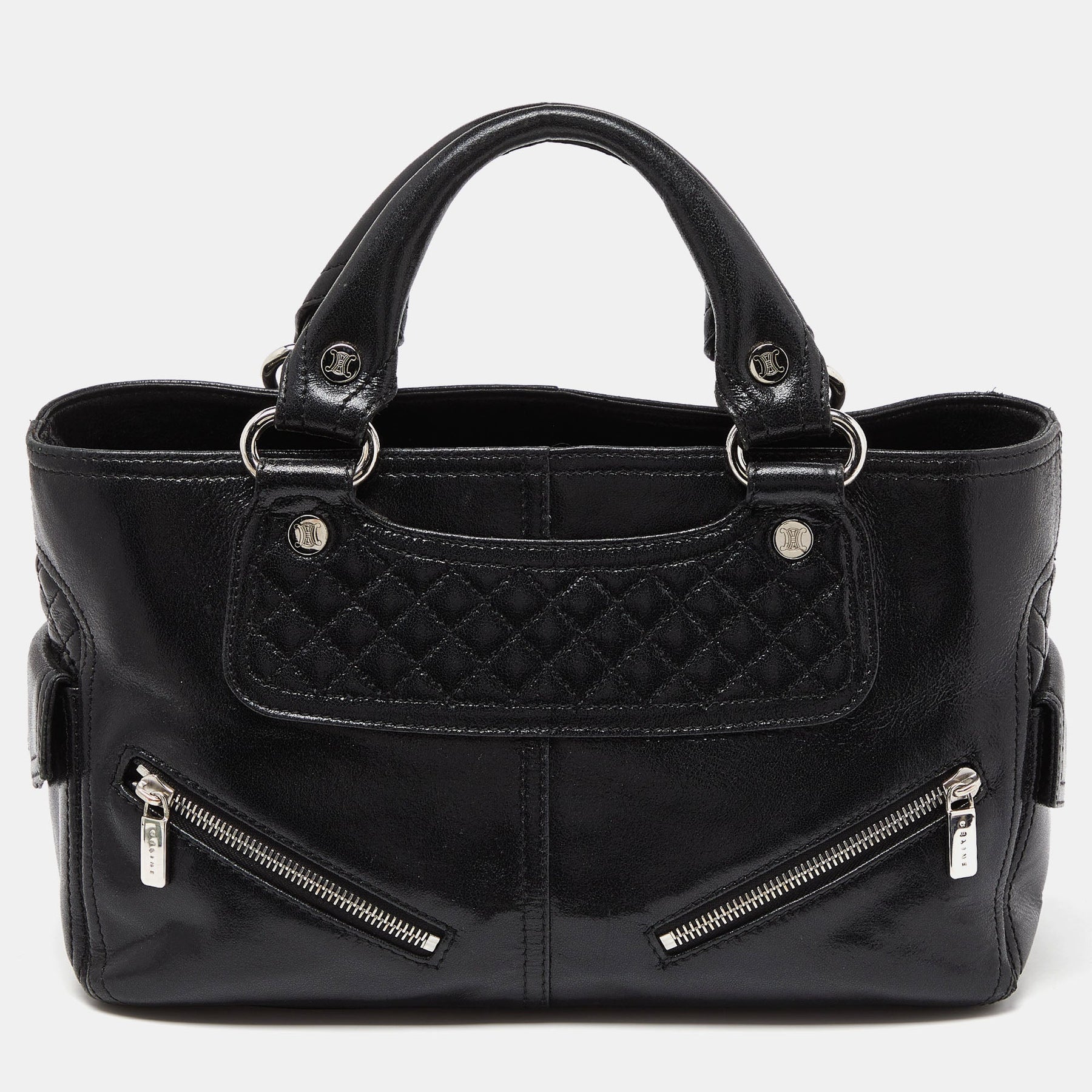 CELINE Black Quilted Glossy Leather Boogie Tote
