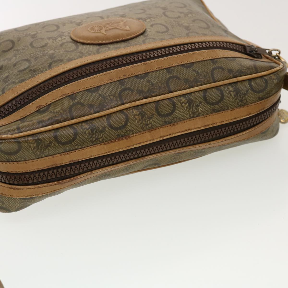 CELINE C Macadam Canvas Shoulder Bag Beige Auth 41264