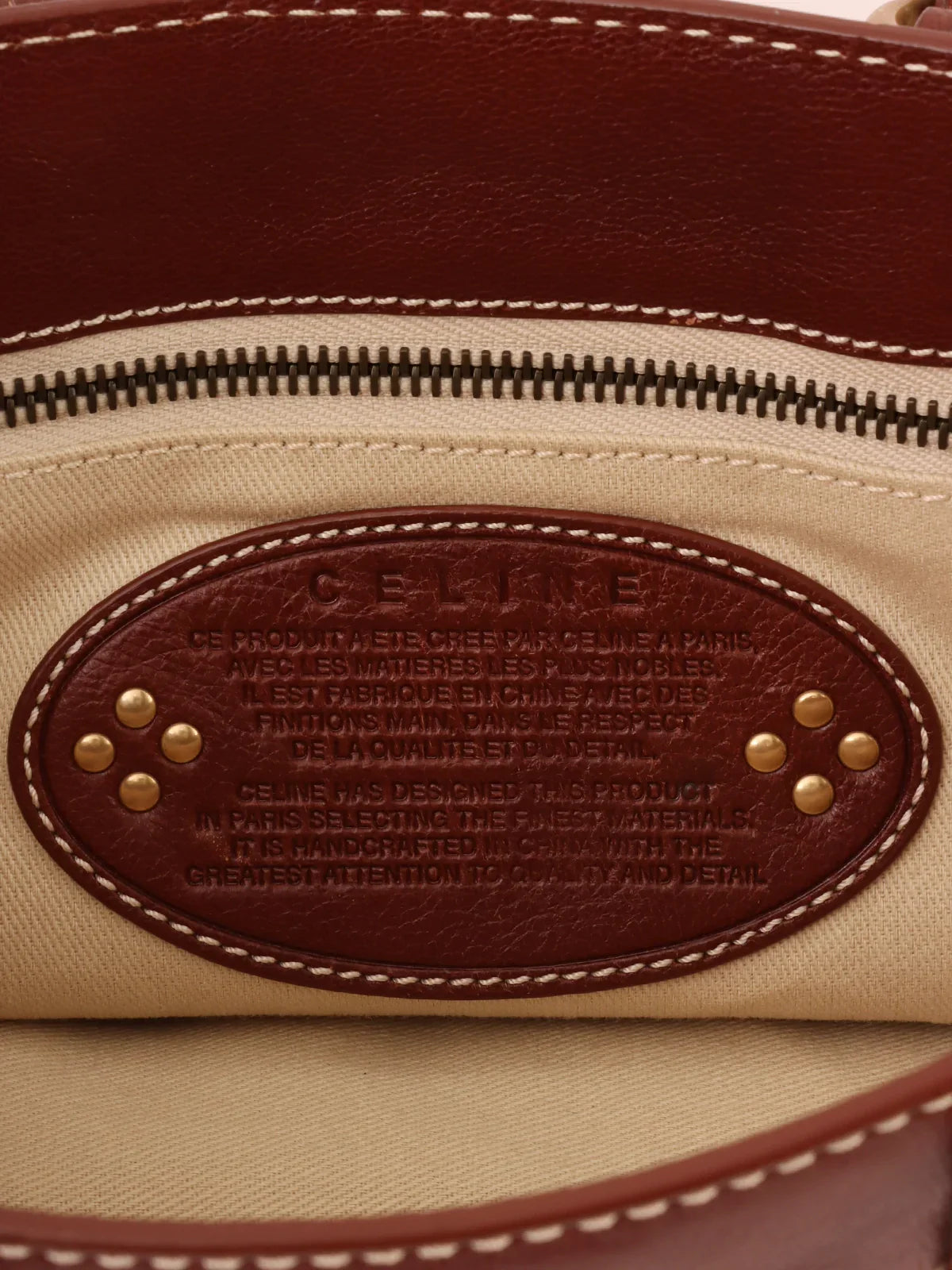 CELINE C Macadam Pattern Logo Embossed Top Handle Bag Red/Brown