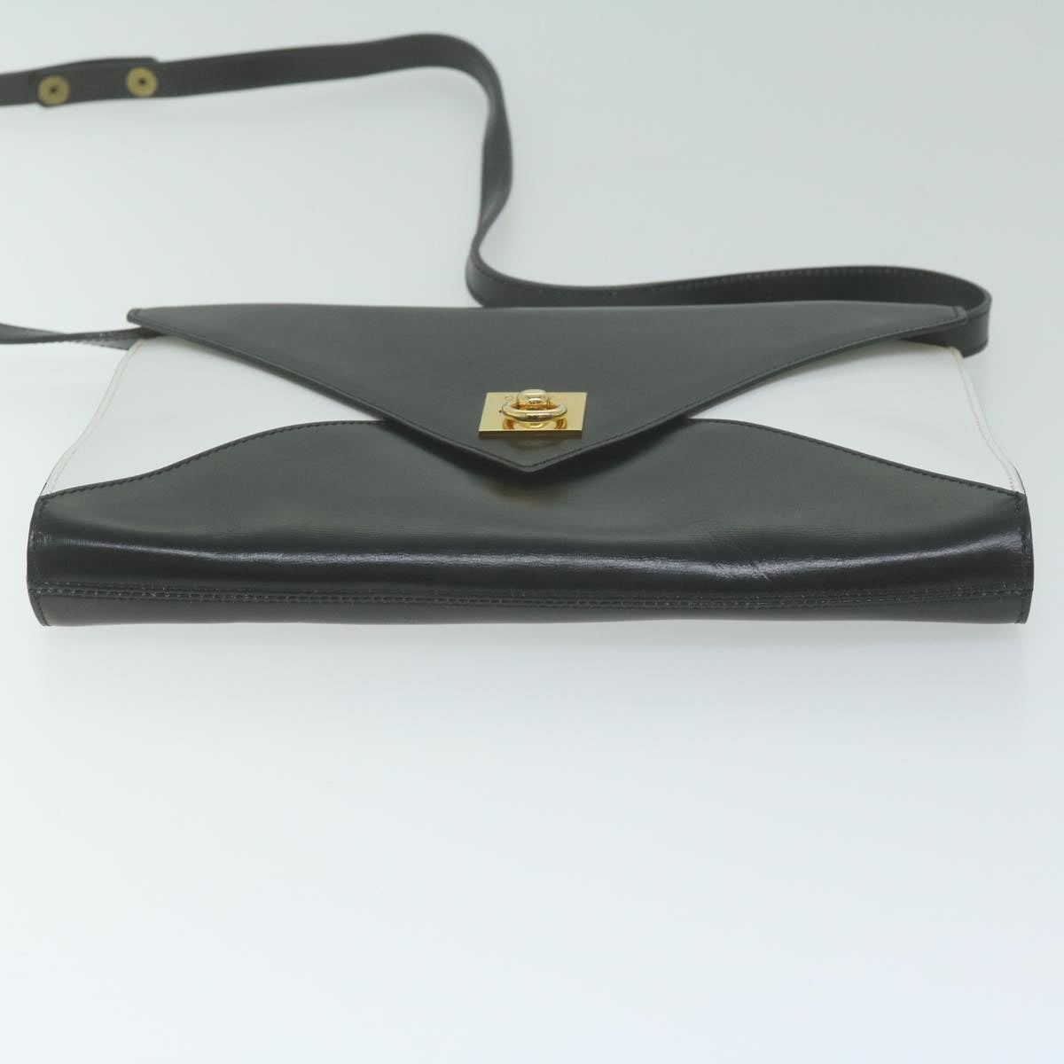 CELINE Clutch Bag Leather 2way White Black Auth 65641