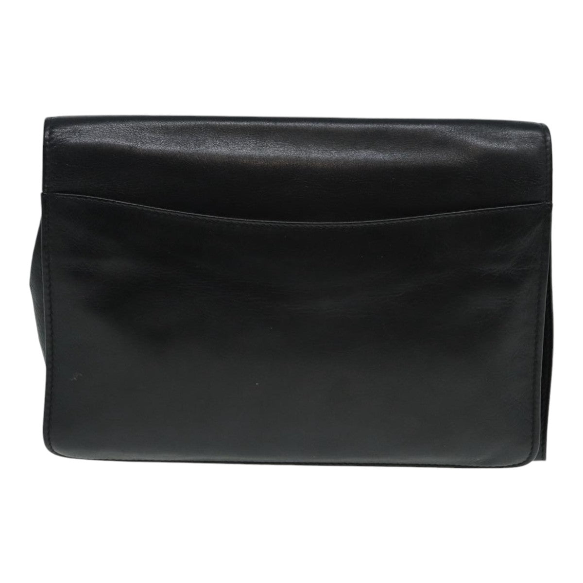 CELINE Clutch Bag Leather Black Gold Auth bs17759