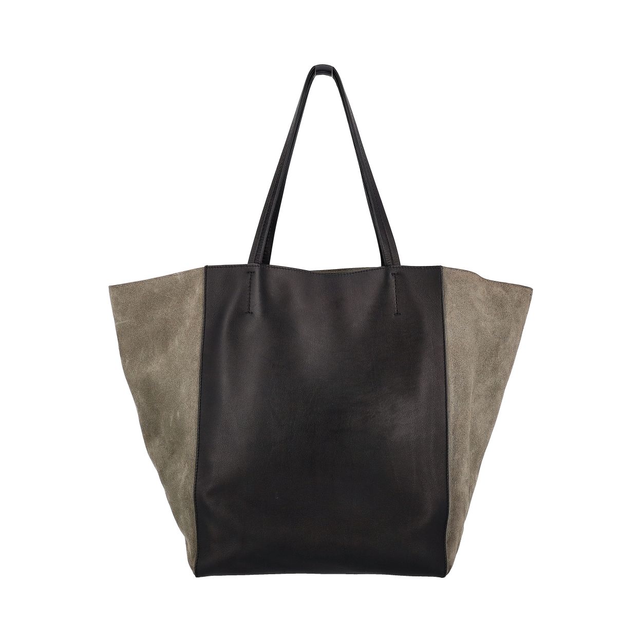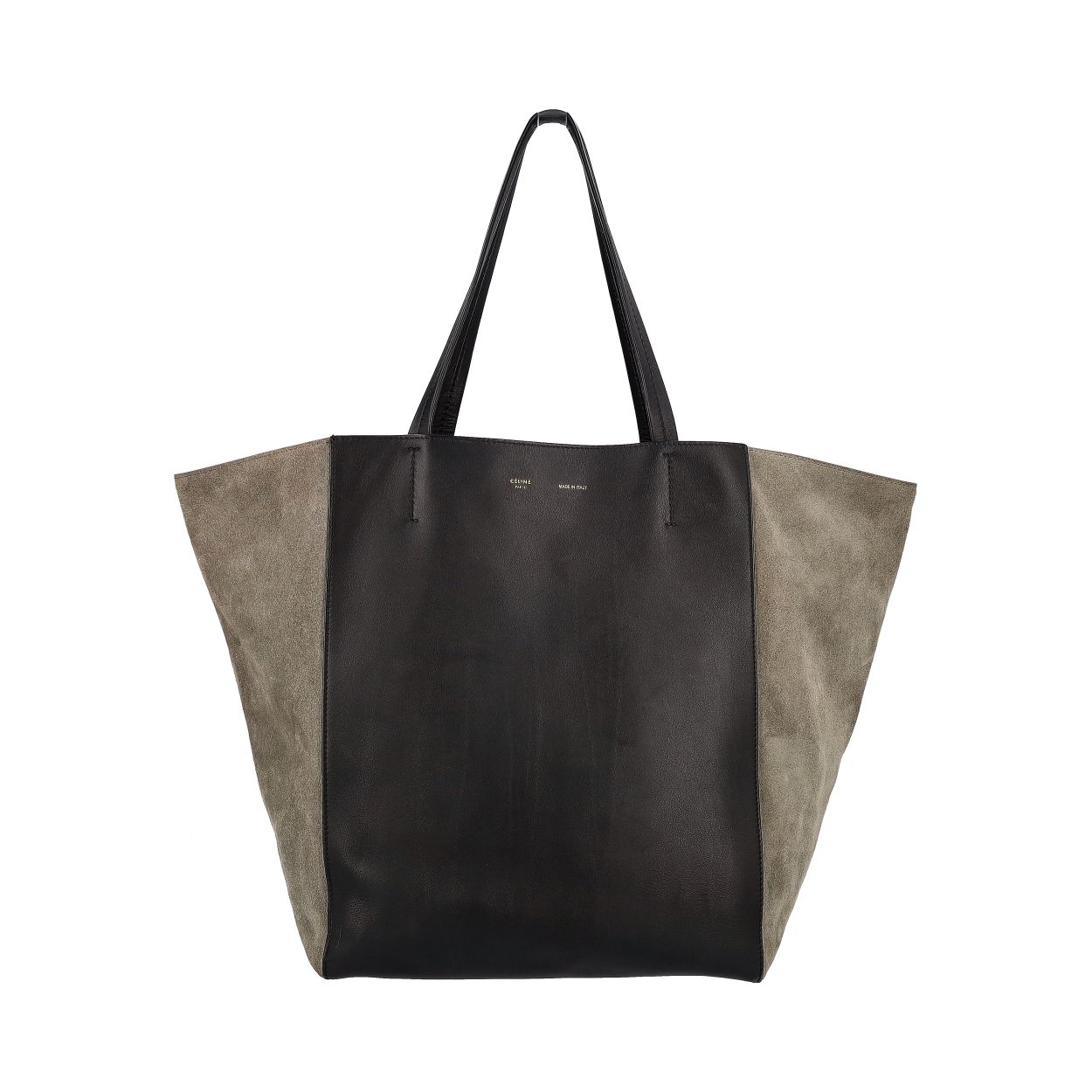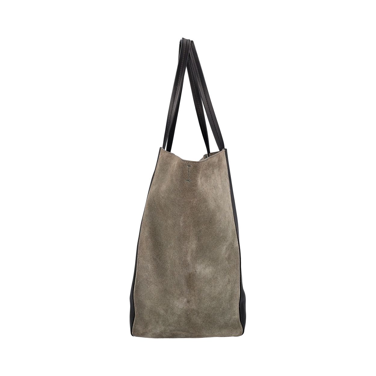 CELINE Leather/Suede Horizontal Phantom Medium Cabas Tote Black/Olive